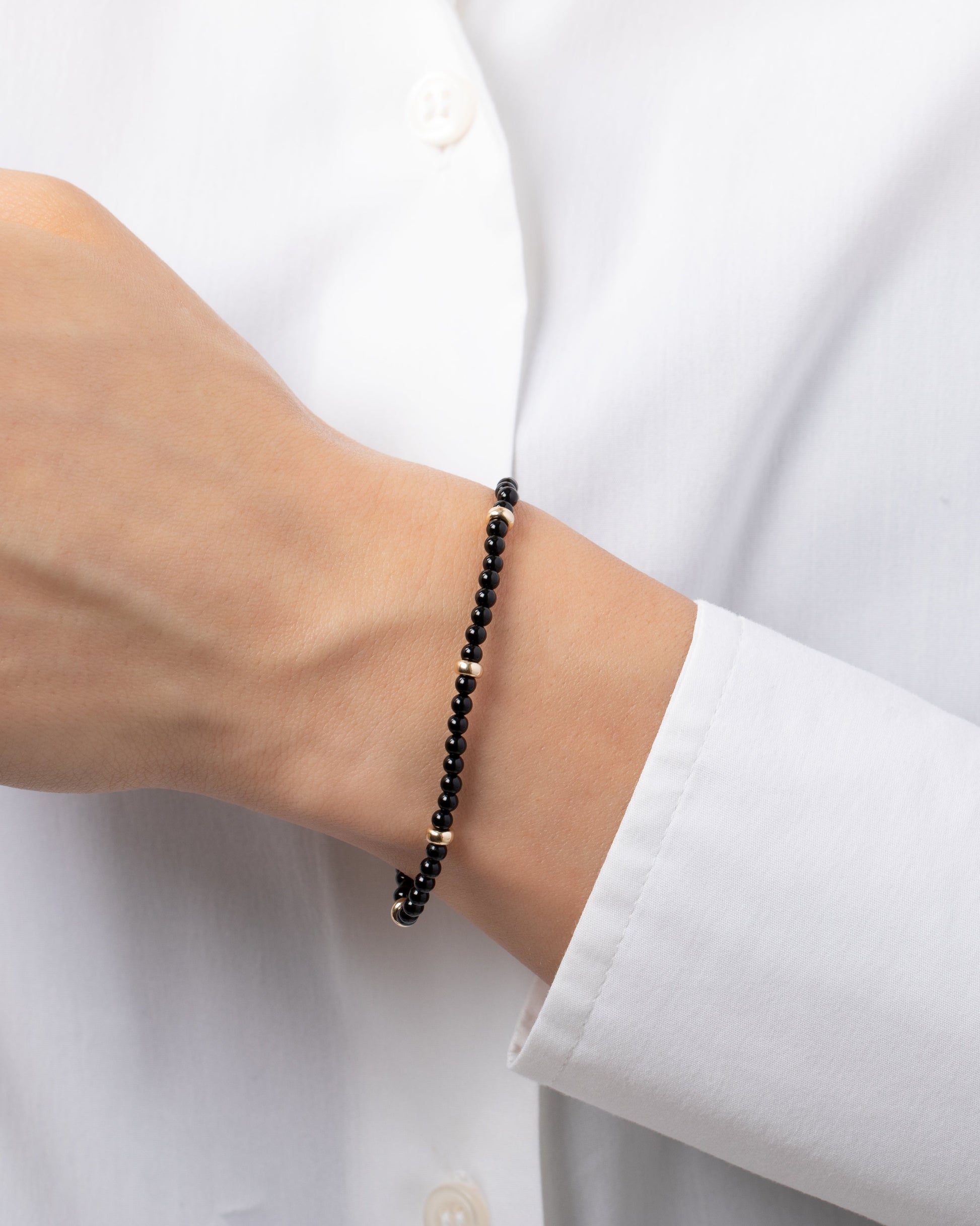 14k Gold Black Onyx Segment Bead Bracelet
