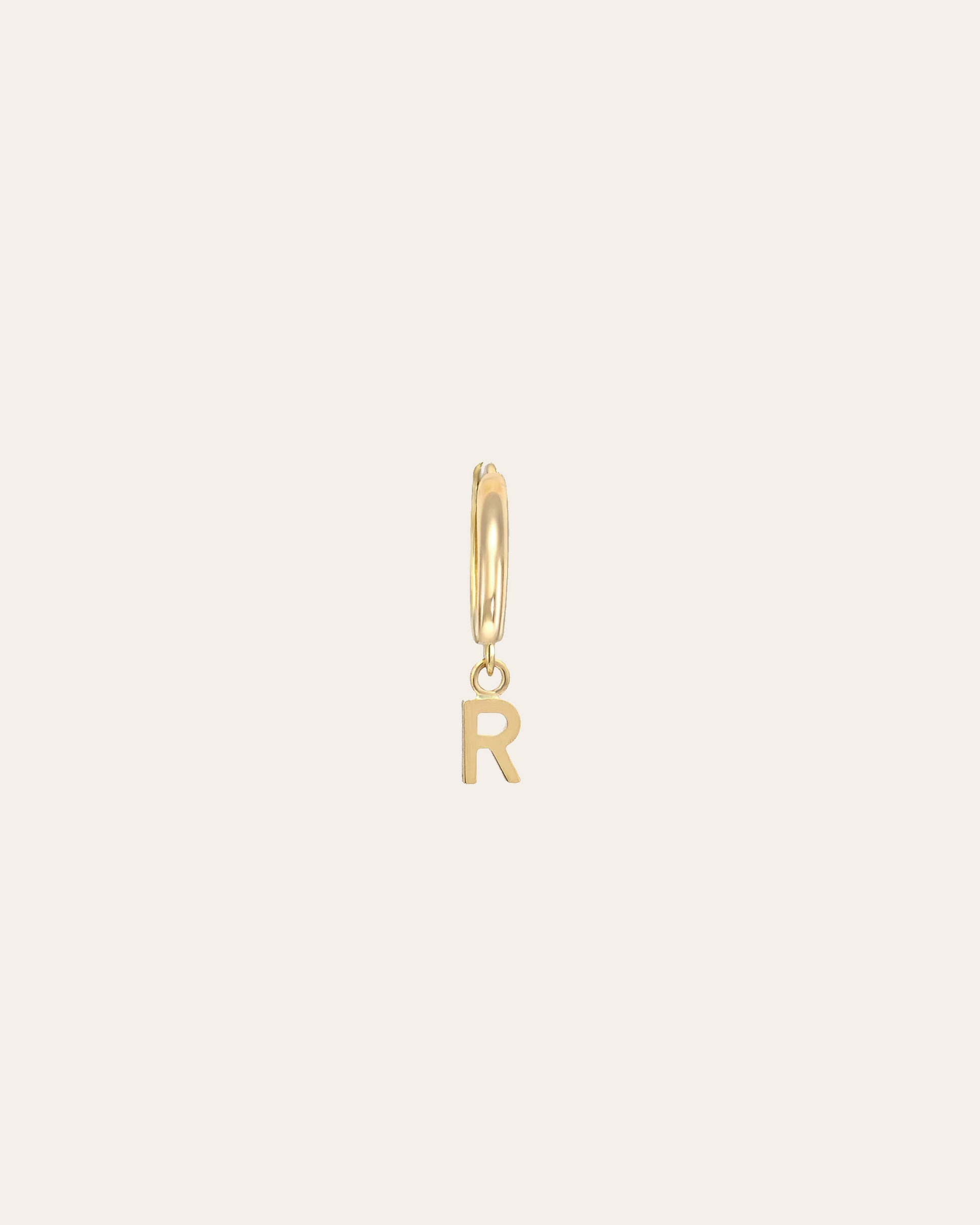 Chic and timeless 14k gold mini huggie with single drop initial. Dainty and fun, they'll be you new favorite hoop! Available in 14k yellow, white, and rose gold.