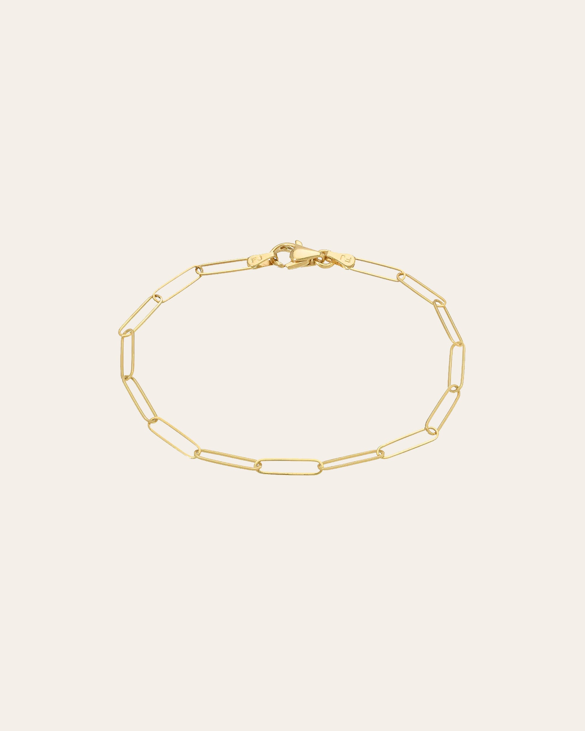 14k gold paper clip cable link chain bracelet available in your choice of length and gold color. Available in yellow, white, and rose gold.