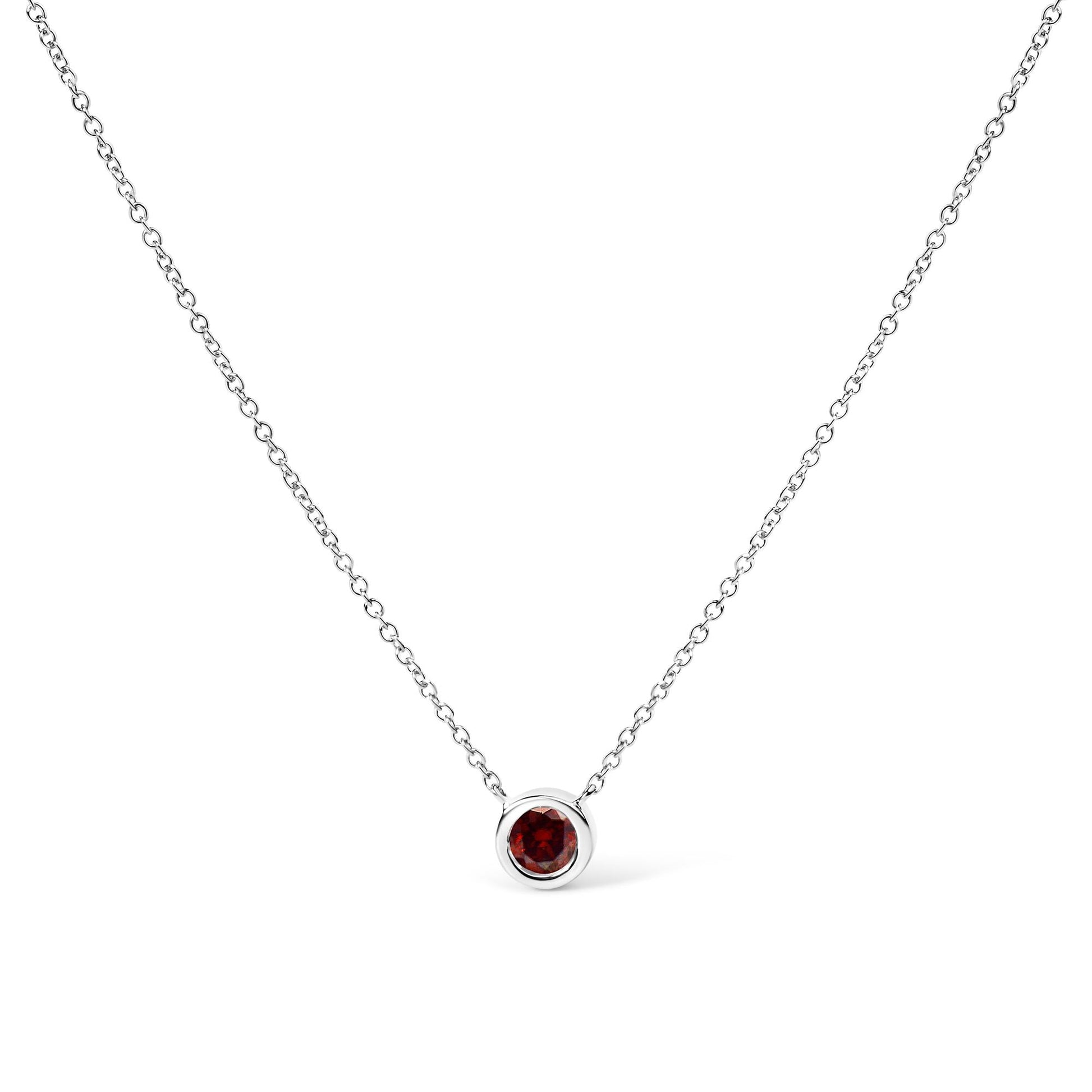 14K White Gold 1/2 Cttw Red Lab Grown Diamond Bezel-Set Solitaire 18" Pendant Necklace (Red Color, VS1-VS2 Clarity)