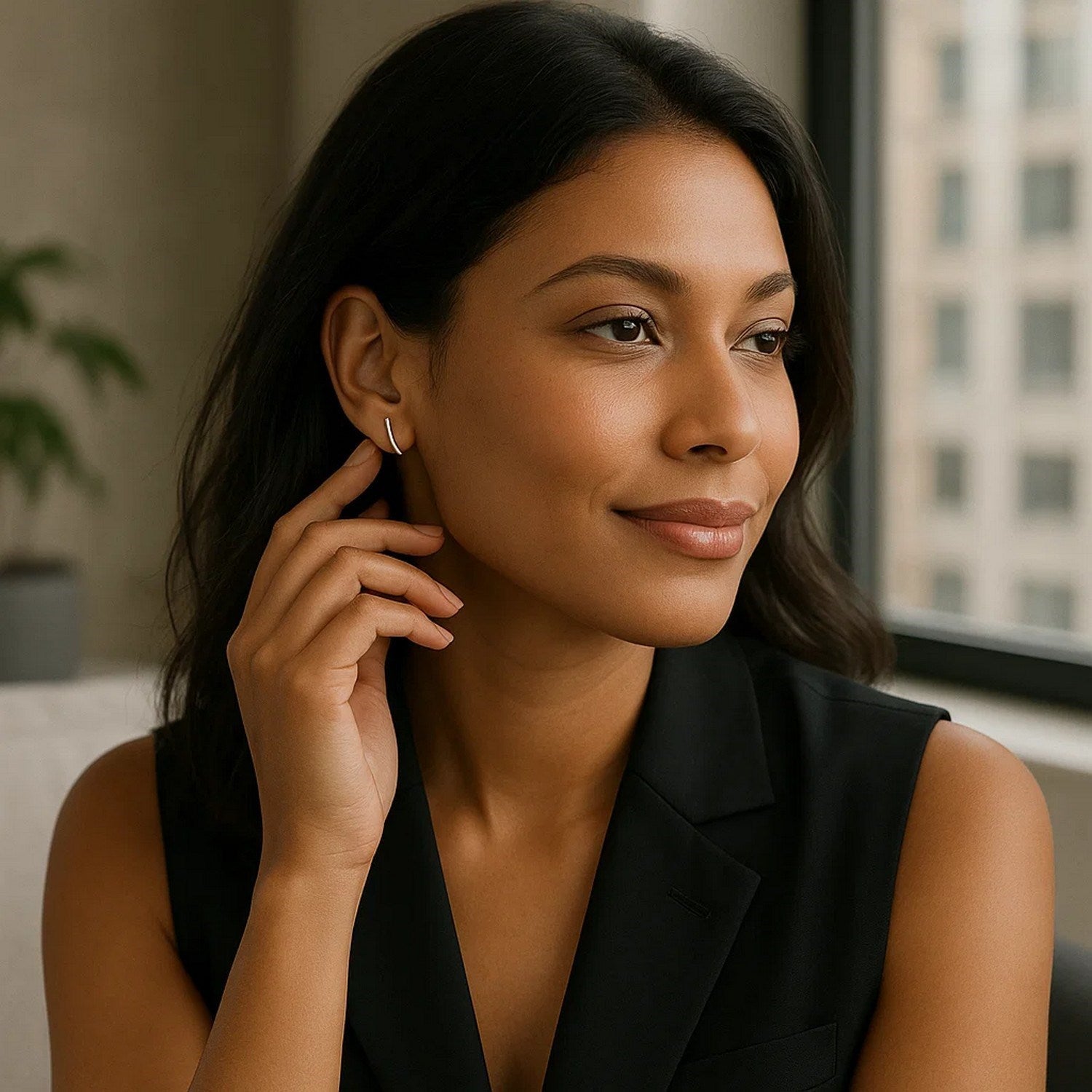14k White Gold Curve Climber Post Earrings