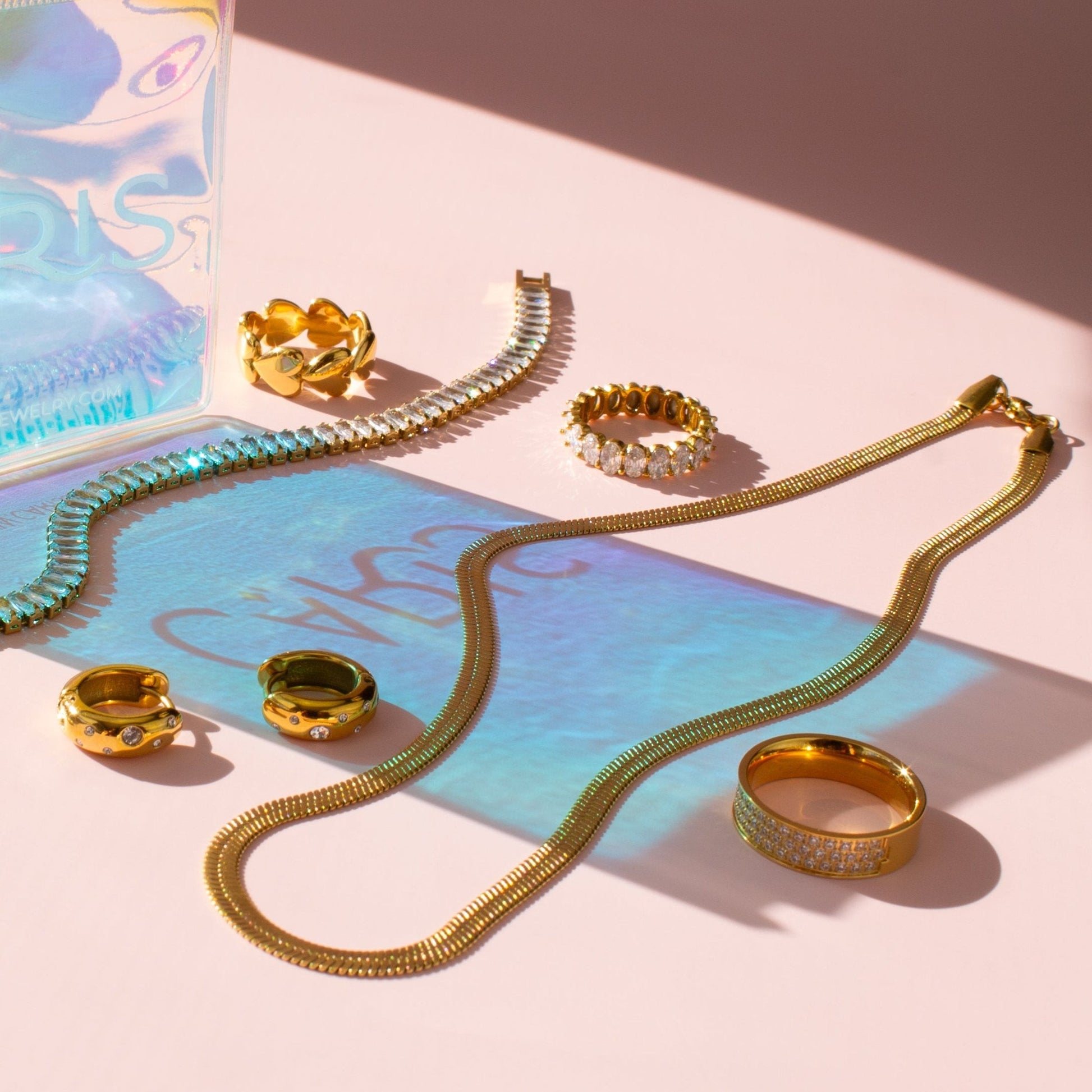 Made from quality 18k gold plated surgical steel, this beauty keeps up with your every move, from poolside hangs to impromptu dance parties. Plus, it’s totally stackable, so go ahead—pair it with your other faves and create your own glittery masterpiece!