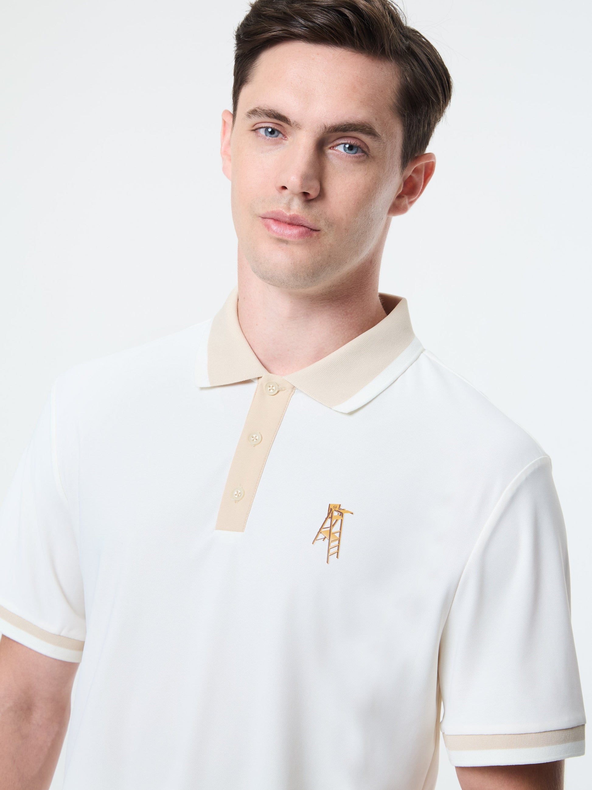 Score style points in the Arbitro Polo, crafted from lightweight, breathable micro piqué to keep you cool under pressure—on or off the court. A rib-knit collar and cuffs are tipped with contrast stripes, while a custom tennis umpire chair graphic sits at the left chest.
