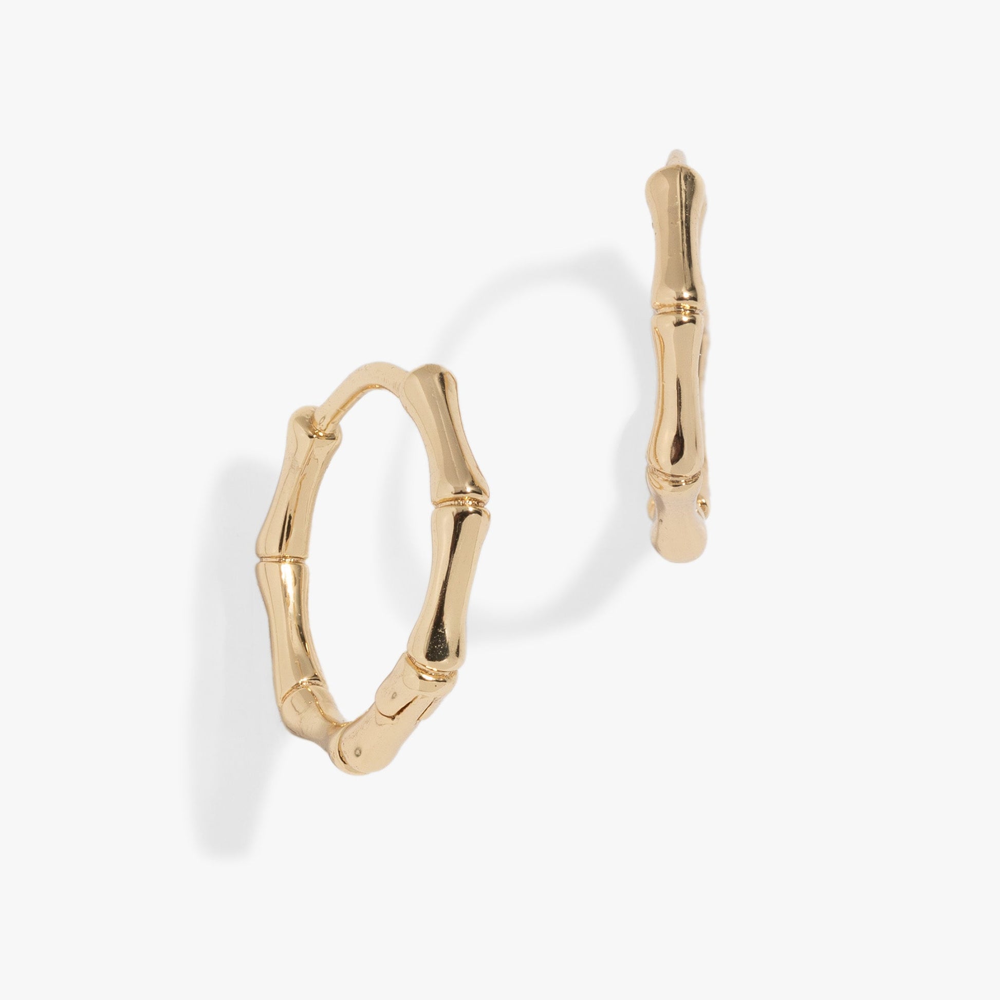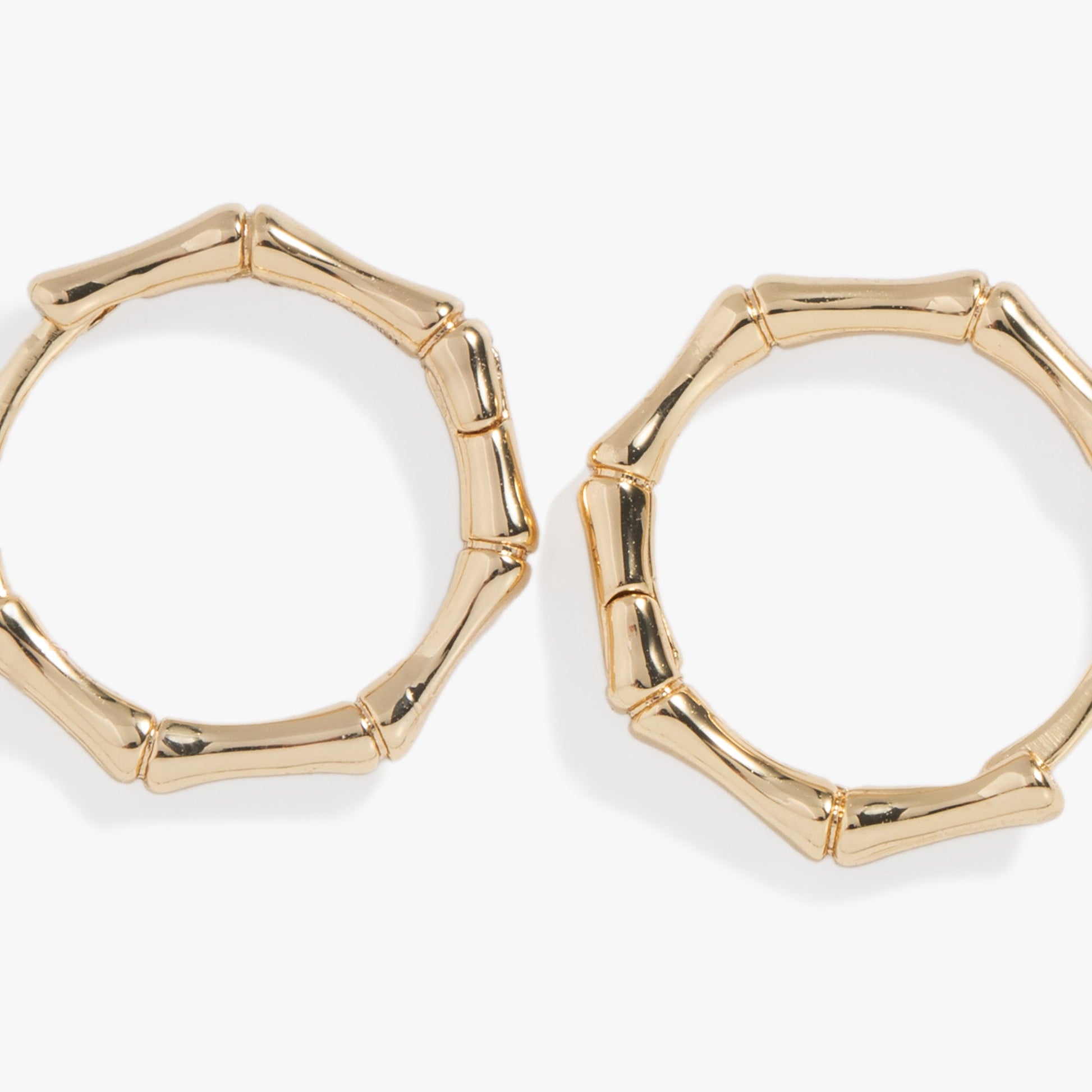 Inspired by the strength and flexibility of bamboo, these Bamboo Huggie Hoops bring a fresh twist to a timeless shape. With faceted crystal accents and sculptural bamboo detailing, they add a touch of natural beauty to your everyday stack. Lightweight, versatile, and easy to style, they’re the perfect pair for mixing, matching, and making your own.