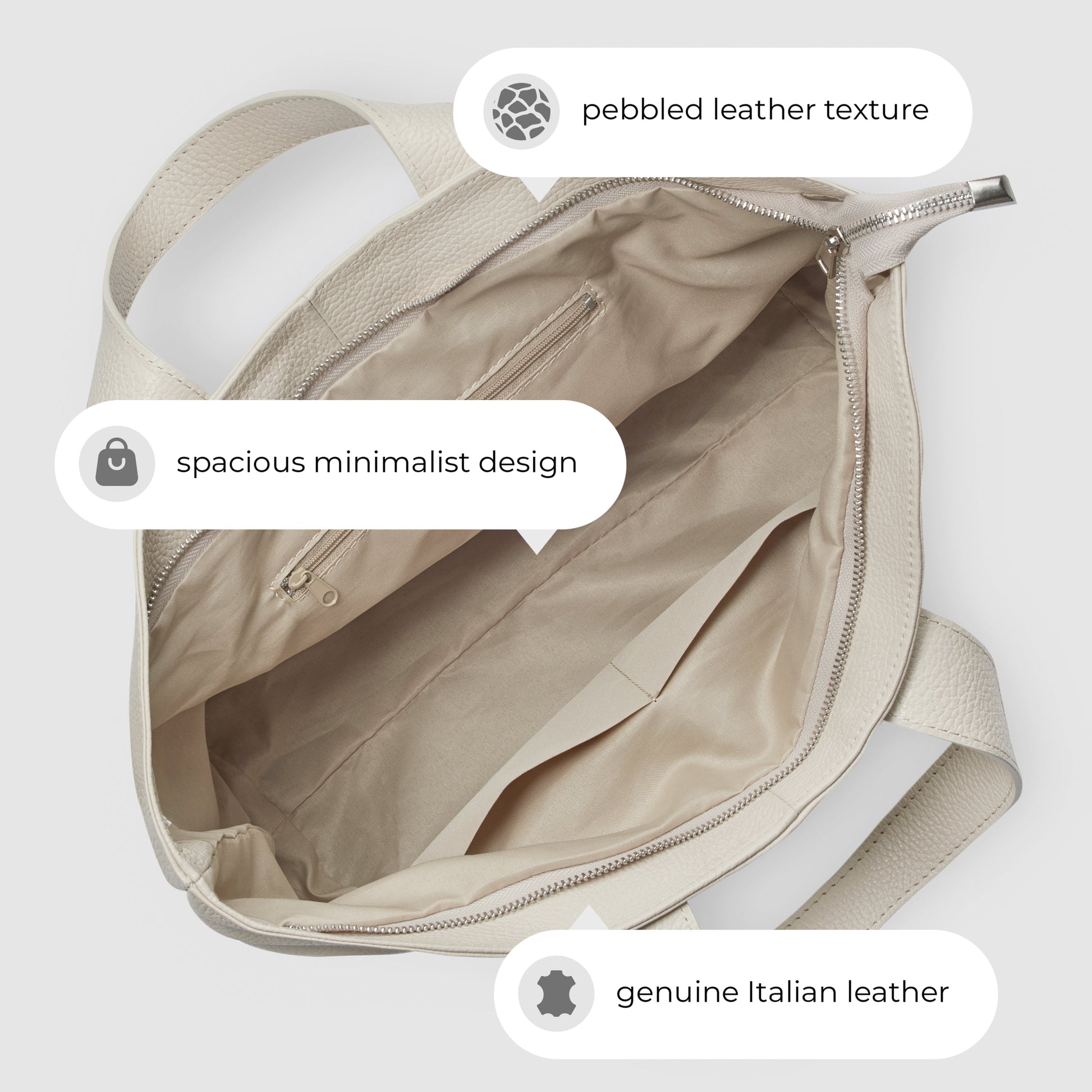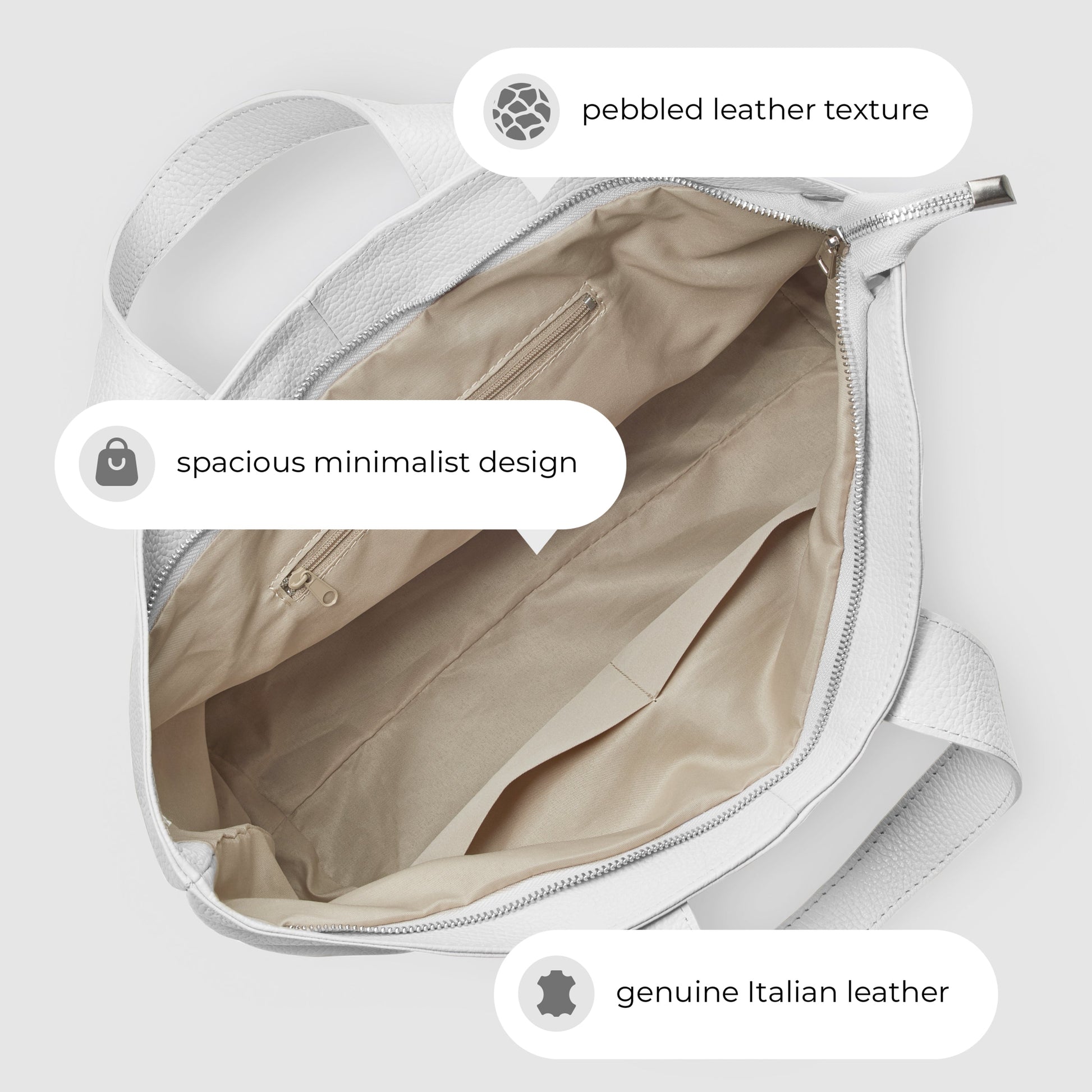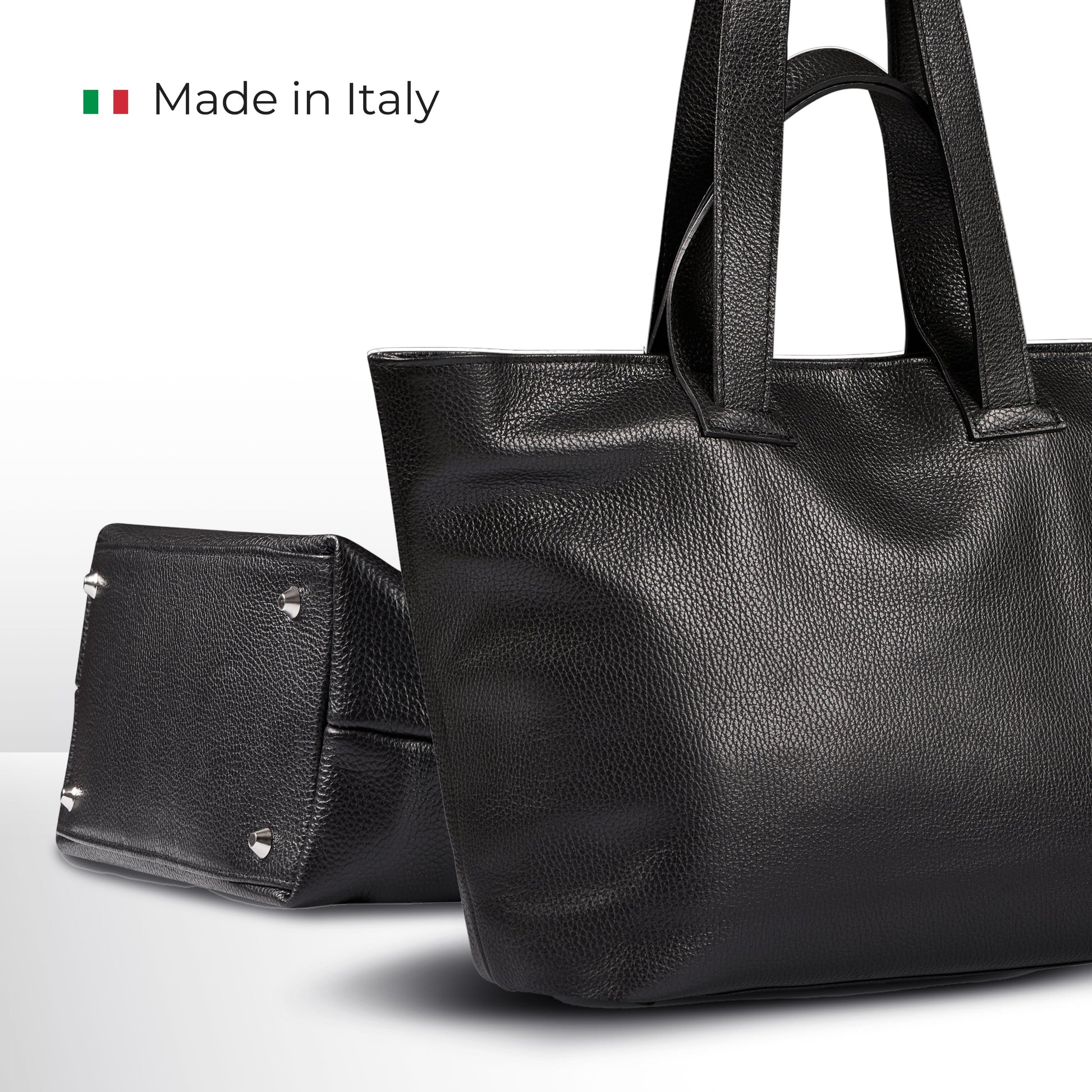 Handcrafted Italian calf leather tote with a striking trapezoid shape and pebbled texture. Features a spacious interior with organized pockets, dual carry options (handles and shoulder straps), and protective metal feet. The minimalist design pairs effortlessly with any outfit—from office wear to weekend adventures. Durable, stylish, and built to last.