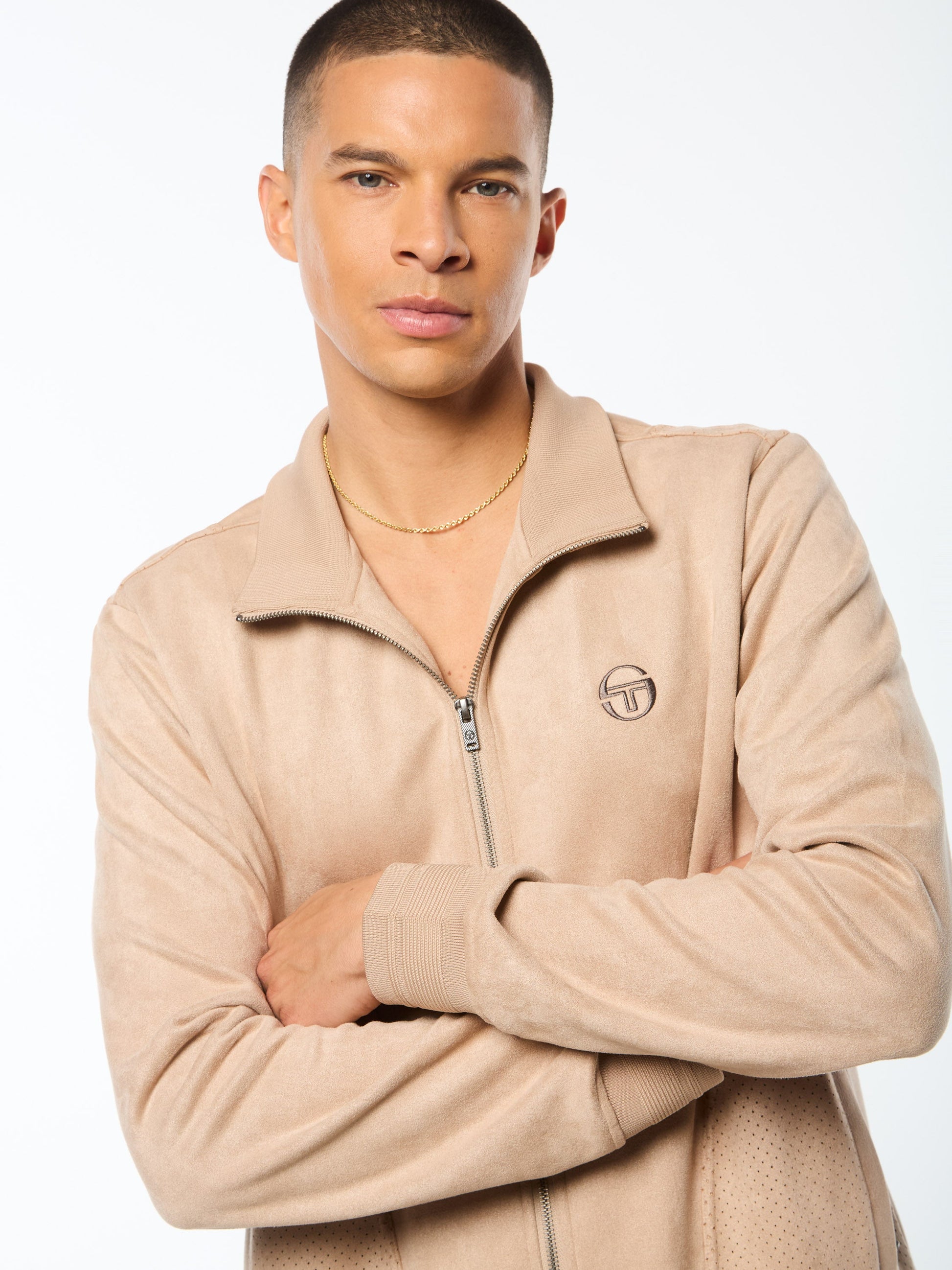 A premium take on the classic Track Jacket, the Camoscio Track jacket is crafted from faux suede for a luxurious feel. Featuring our renowned ST logo at the left chest, and cut with full-zip front, this elevated track jacket is complete with spacious handwarmer pockets and sleeves with a perforated double knit design in the back with faux suede touch.