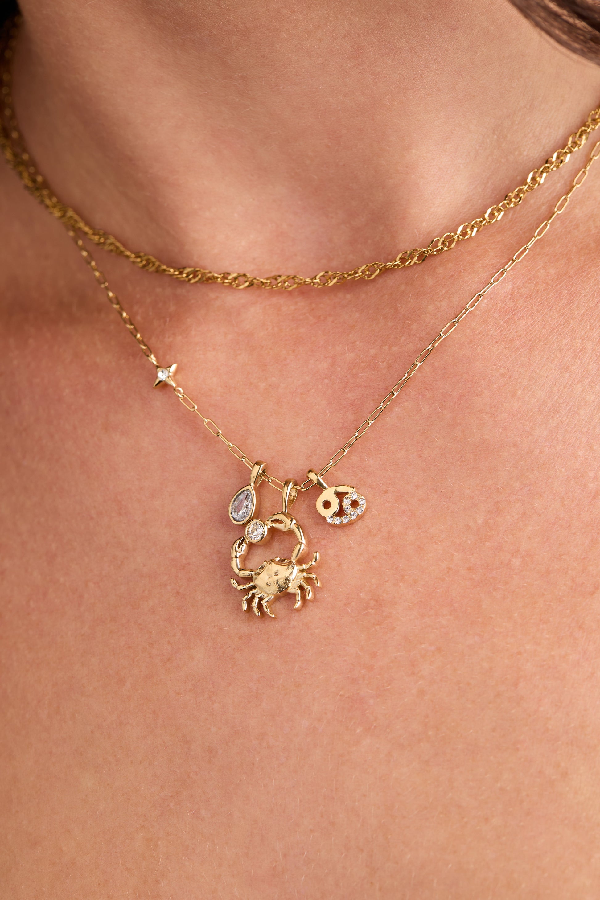 Cancer Zodiac Charm Cluster Necklace
