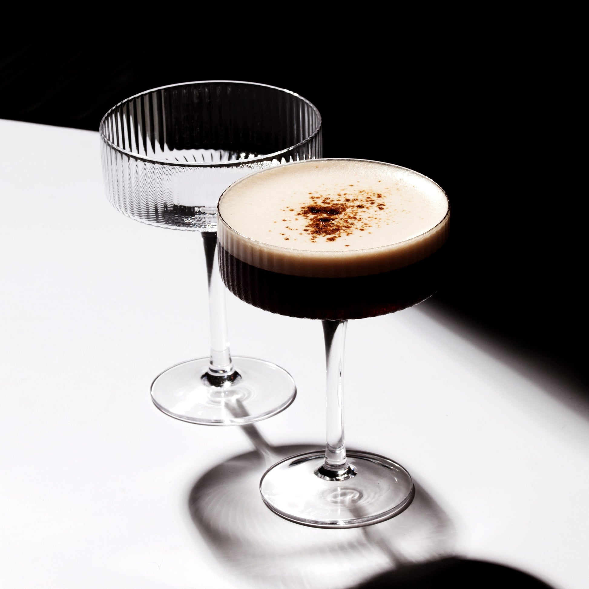 PREMIUM SET: This set includes elegant 9.5oz stemmed ribbed martini glasses, beautifully packaged in a luxurious Lemonsoda-branded black gift box. Each glass holds 9.5oz (280ml), perfect for serving espresso martinis or any other classic cocktails with a touch of sophistication.