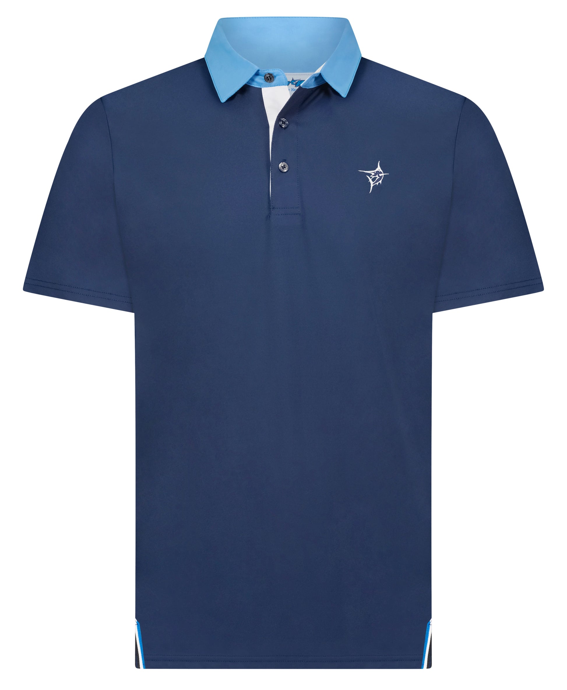 - Embroidered left chest icon logo