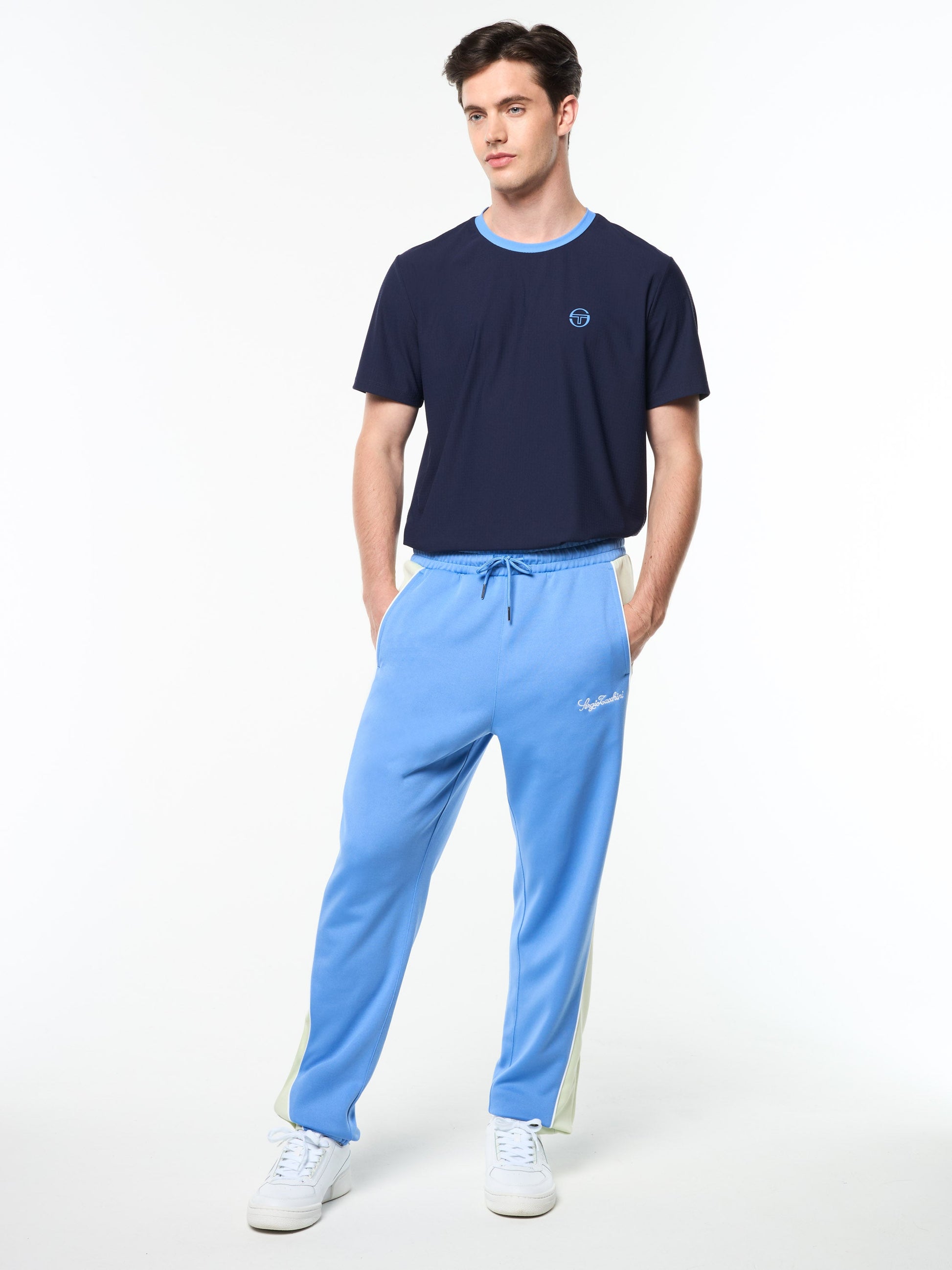 Where sport meets statement. Our Corsa Track Pant takes cues from vintage racing kits—revved up with modern edge. Crafted from soft yet structured double-face knit fabric, these premium track pants feature bold color-blocking and piping accents down the legs, a comfortable drawstring waistband, and adjustable ankle zips for on and off-court convenience.