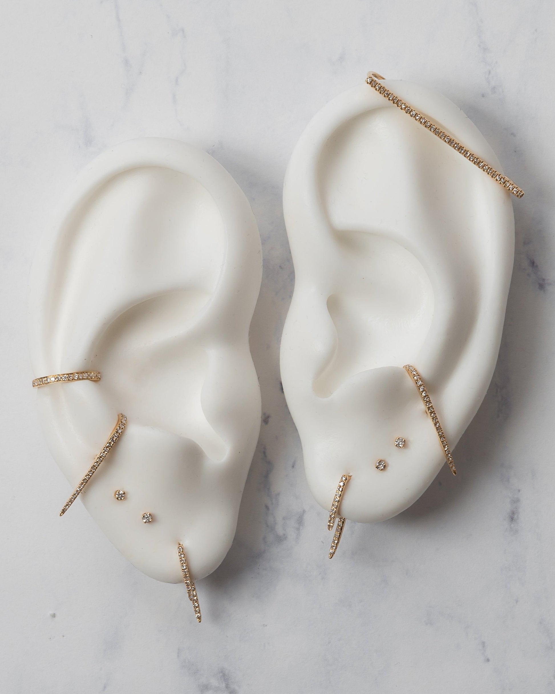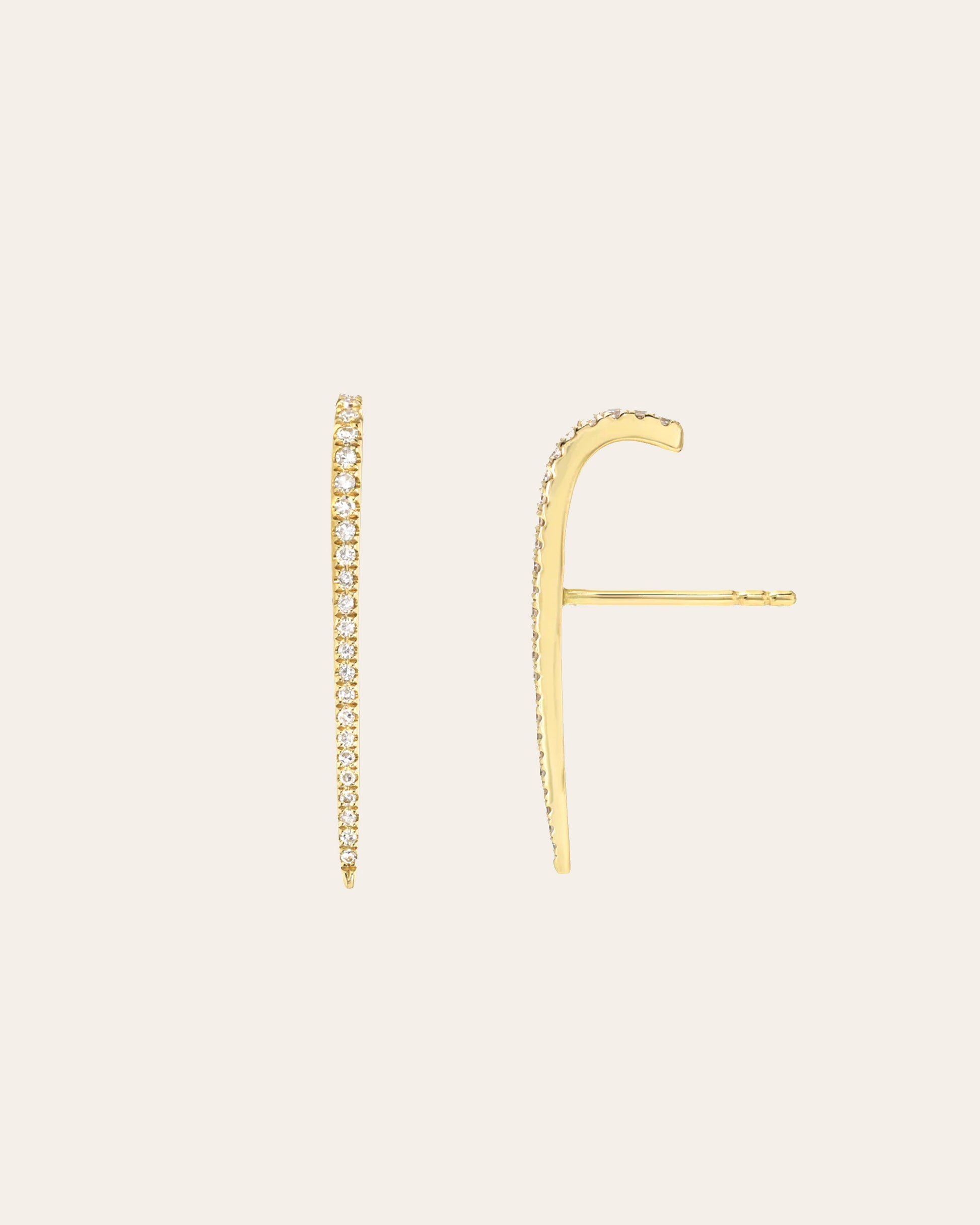 Diamond curved bar stud earrings, that hugs your cartilage, in 14k solid gold color of your choice, classic and timeless, wear it up or down, day and night.