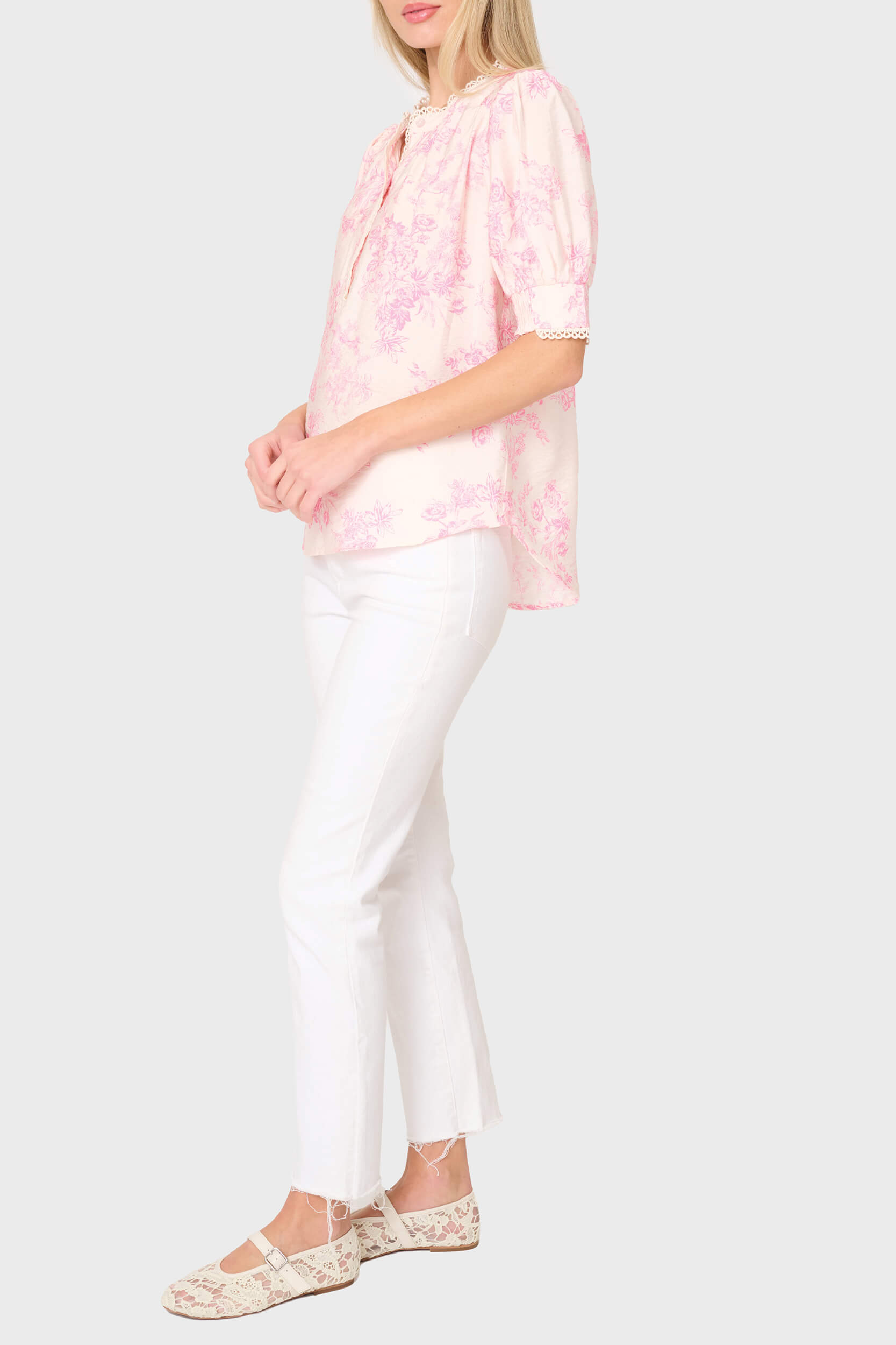 Dianthus Henley Crochet Trim Blouse