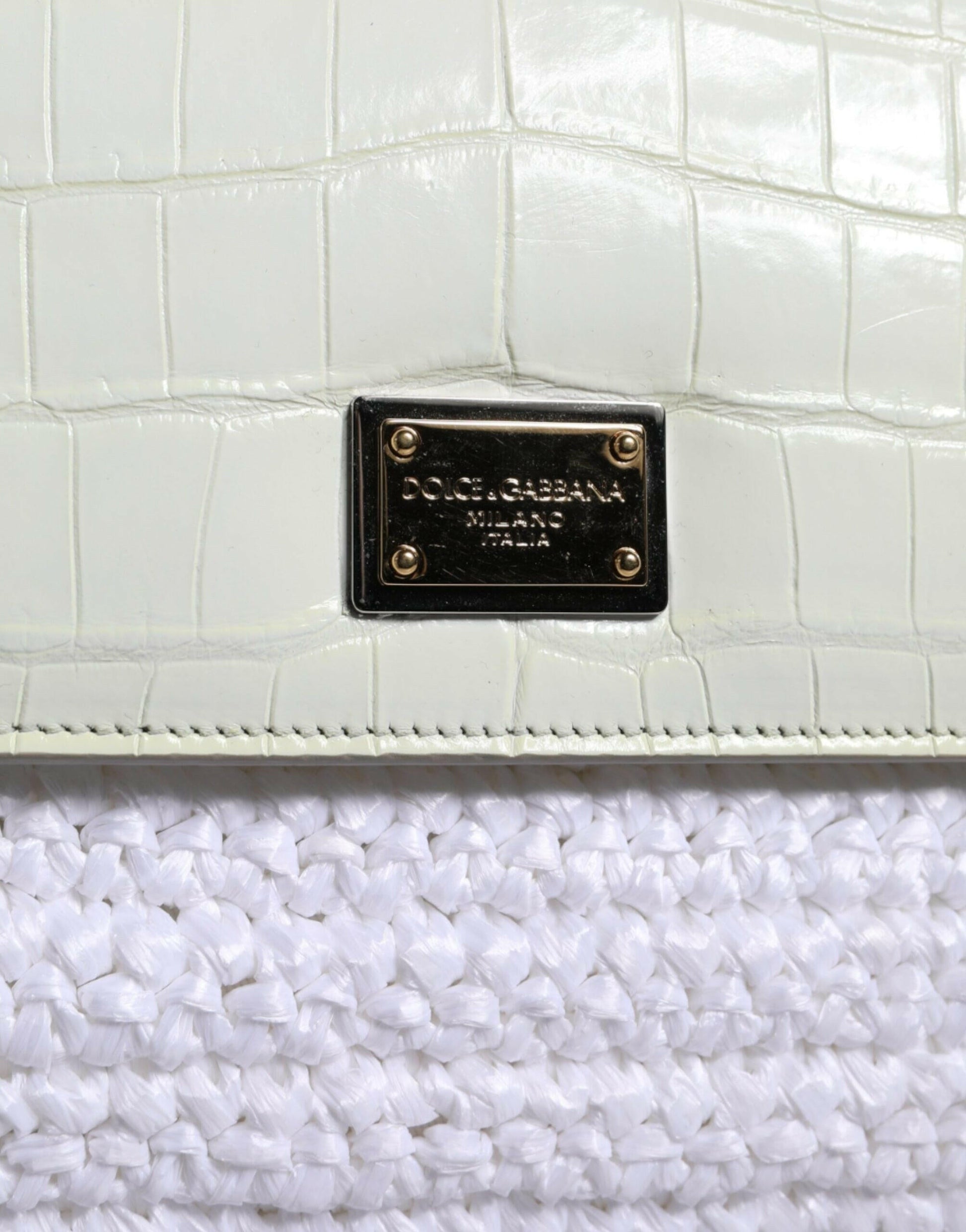 Dolce & Gabbana White Rafia Leather Sicily Crossbody Bag