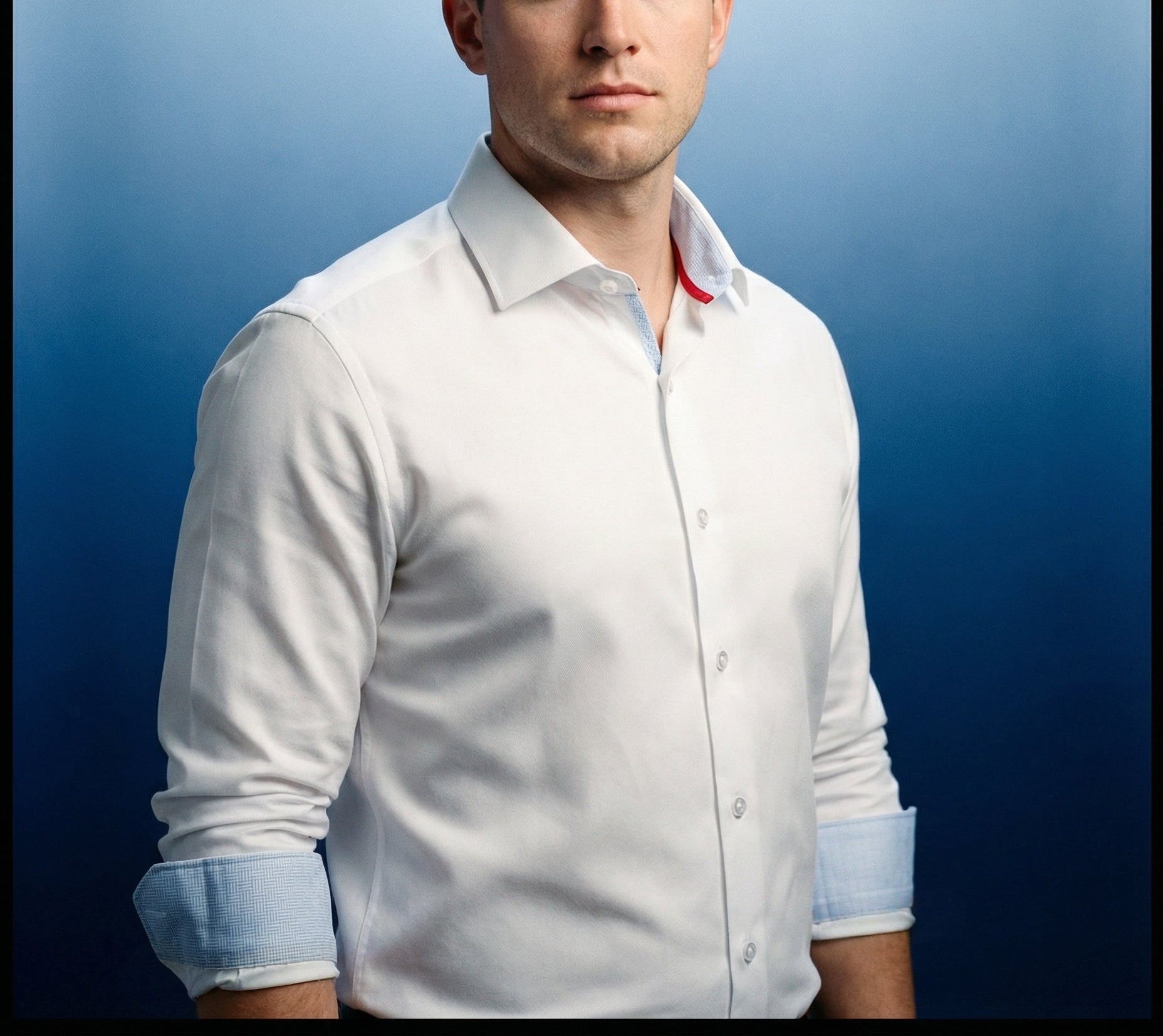 Kenneth// Cotton Knit-Stretch Button-Up Shirt With Contrast Details // White // Tailored Fit (Fitted)