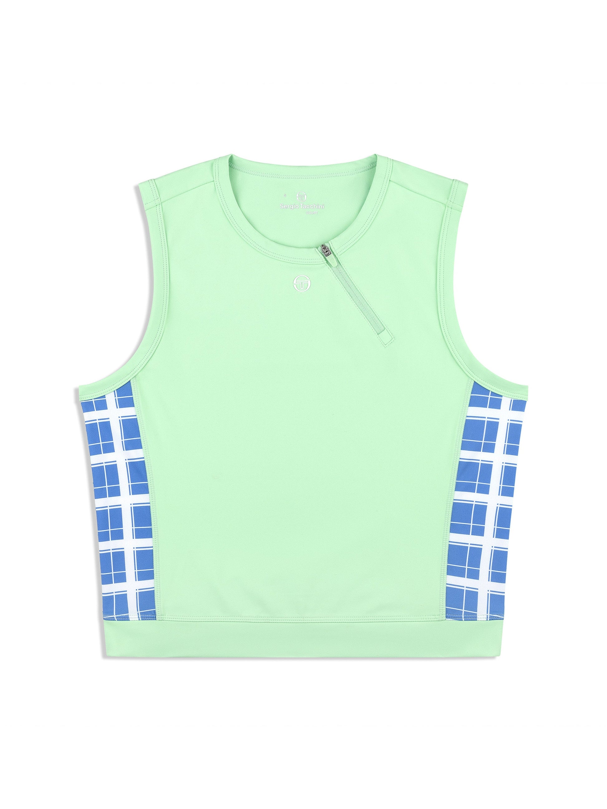 Engineered for style and performance, the Lara Cropped Top takes your on-court look to the next level. Crafted from premium court stretch fabric with moisture-wicking properties, this fitted and slightly cropped tank keeps you cool, fresh, and moving freely. Side body panels feature our custom Damarindo check pattern for a hit of heritage flair, while an angled zipper at the chest adds a modern edge.