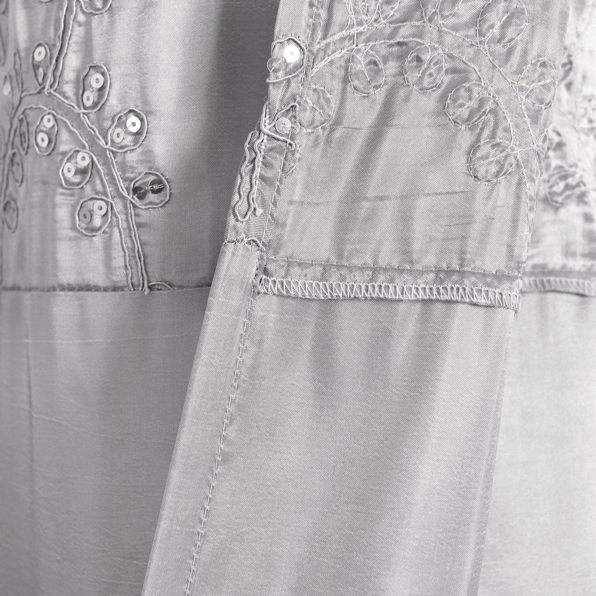 This Maria Shower Curtain is perfect for the person who is looking to make a bold statement in their bathroom. Fabricated from taffeta, it features cord embroidery and sequins.