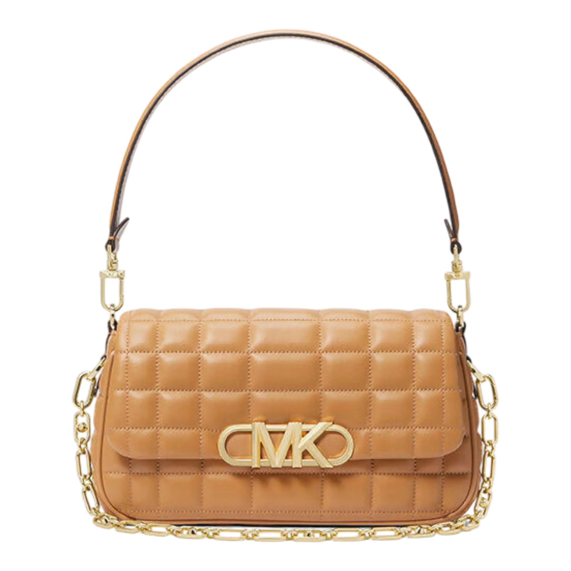 Carry your essentials in style with the Michael Kors Parker medium shoulder bag. This luxe piece showcases buttery pale peanut leather with an iconic quilted finish and gleaming gold-tone MK accents that scream sophistication. Swap between the leather strap and chain-link option to go from polished shoulder carry to hands-free crossbody mode—because who says you can't have it all? Smart pockets keep your everyday must-haves organized and within reach.