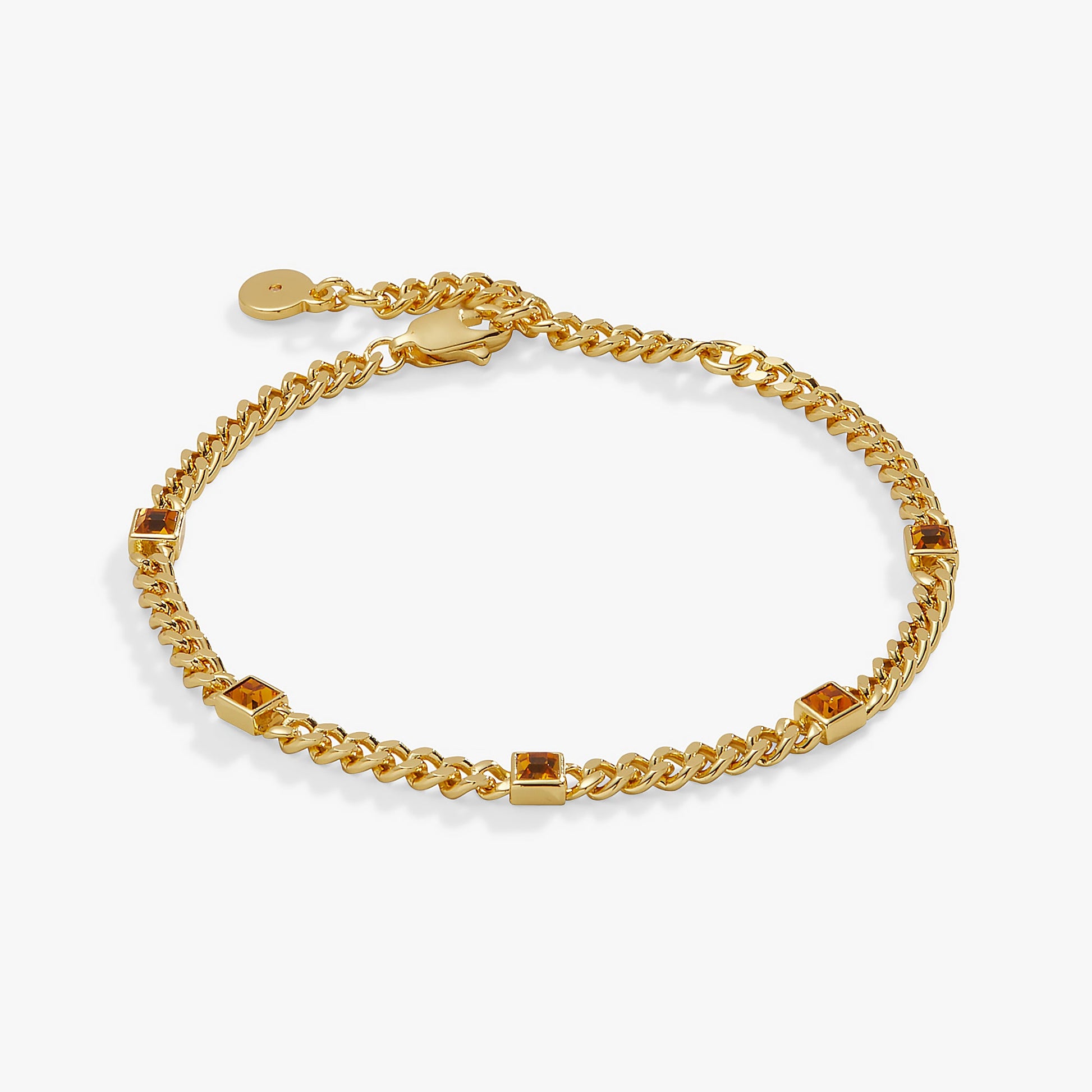 Celebrate November birthdays with this stunning topaz curb chain bracelet! Topaz, the gemstone of clarity and confidence, makes the perfect gift for anyone born this month. The sleek curb chain design pairs timeless elegance with modern style, while the warm golden hues of topaz add a touch of sophistication to any wrist. Whether you're treating yourself or honoring someone special, this birthstone bracelet is a meaningful way to shine all year long.