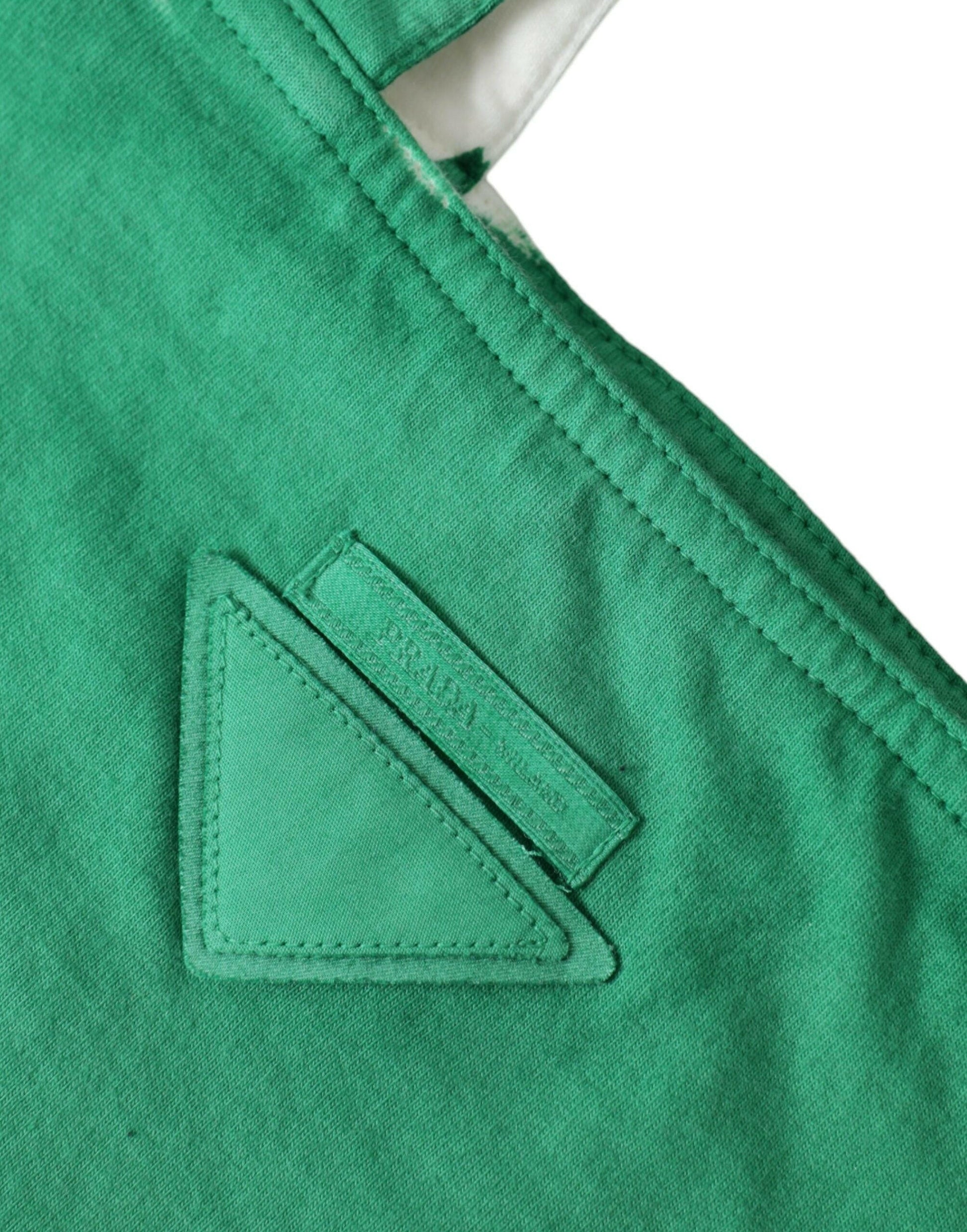 PRADA Green Jersey Fabric Logo Shoulder Shopping Tote Shopping Bag