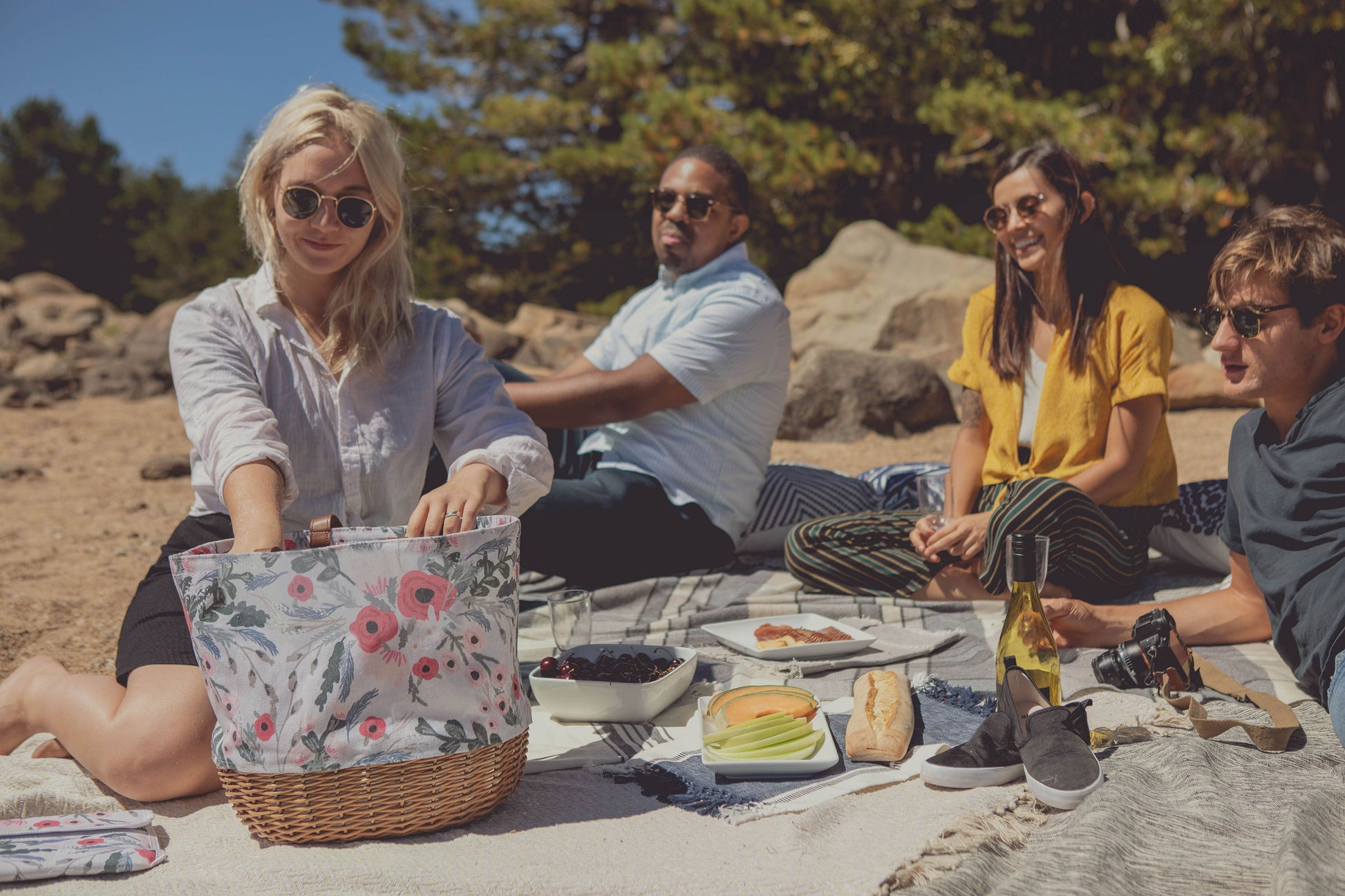 It’s a basket! It’s a tote bag! It’s a...bagsket? Sure! The Promenade Picnic Basket for 2 is a picnic basket set dressed up as a chic tote bag. Both fashionable and functional, the Promenade is fitting for every occasion. Unlike more conventional baskets, the Promenade’s collapsible interior allows for easy storage. Packed with a full cutlery, plate and wine glass picnic set for two, the Promenade still has plenty of space for your wine and cheese. Instead of a handle, you get a charming leatherette strap. Sitting sturdily on its handwoven willow foundation, this unique and useful basket tote picnic kit makes a fantastic gift - or treat for yourself.