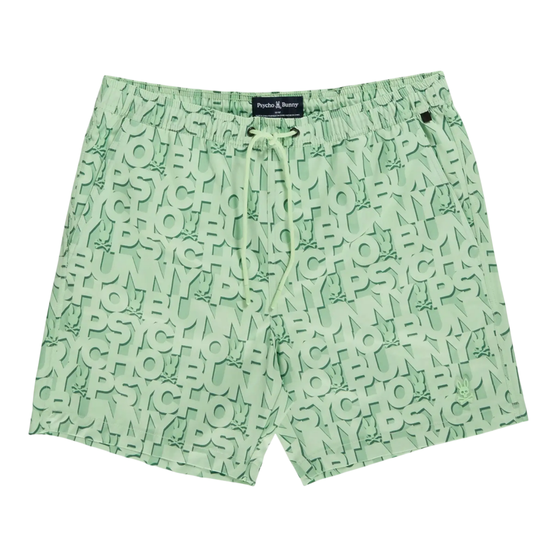 Psycho Bunny Damon All Over Print Men Swim Trunks Patina Green