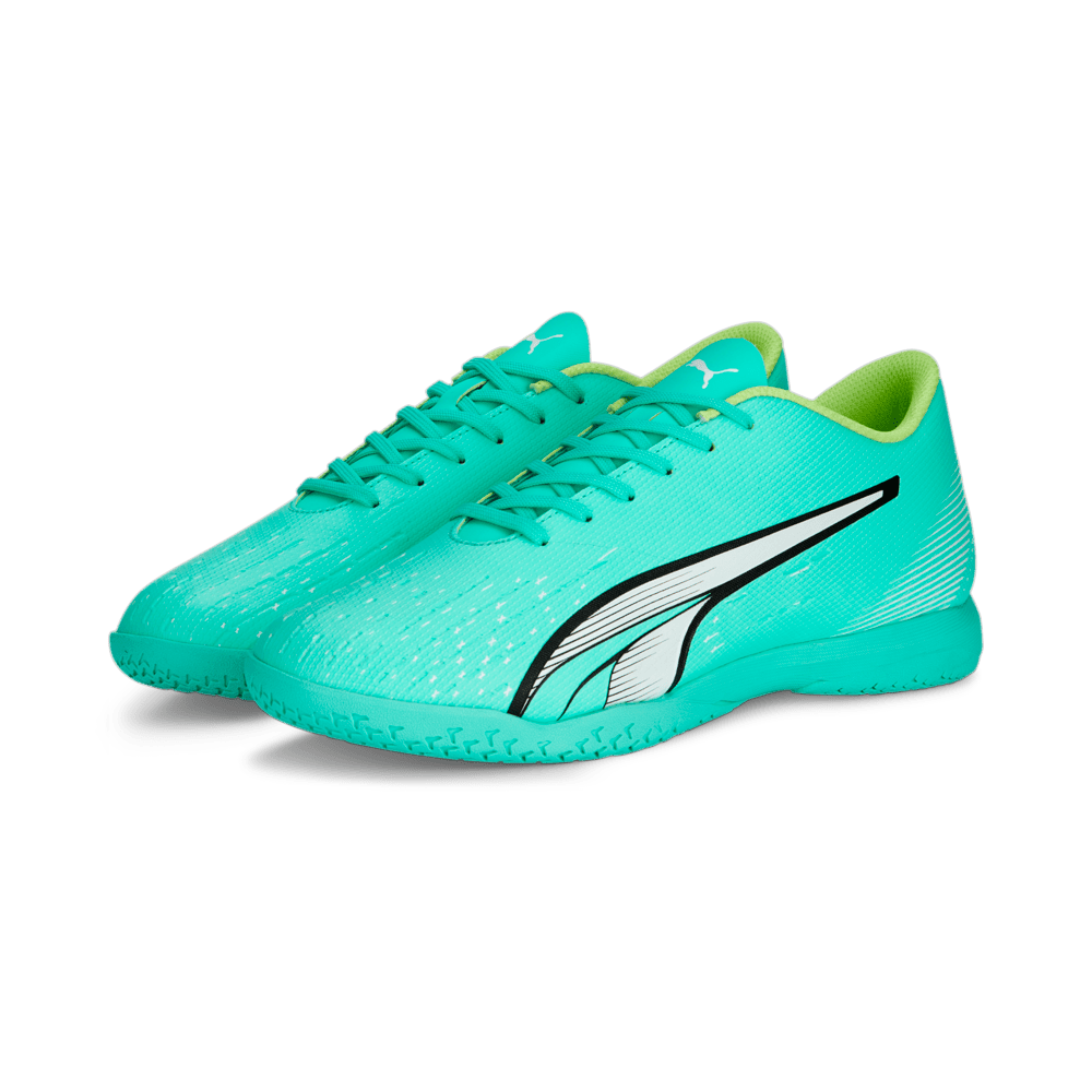 The Puma Ultra Play IT blends indoor performance with dynamic style in Electric Peppermint. Designed for the fast-paced futsal player, it features a lightweight PU upper with sleek Formstrip branding over a non-marking rubber outsole ideal for traction and control.