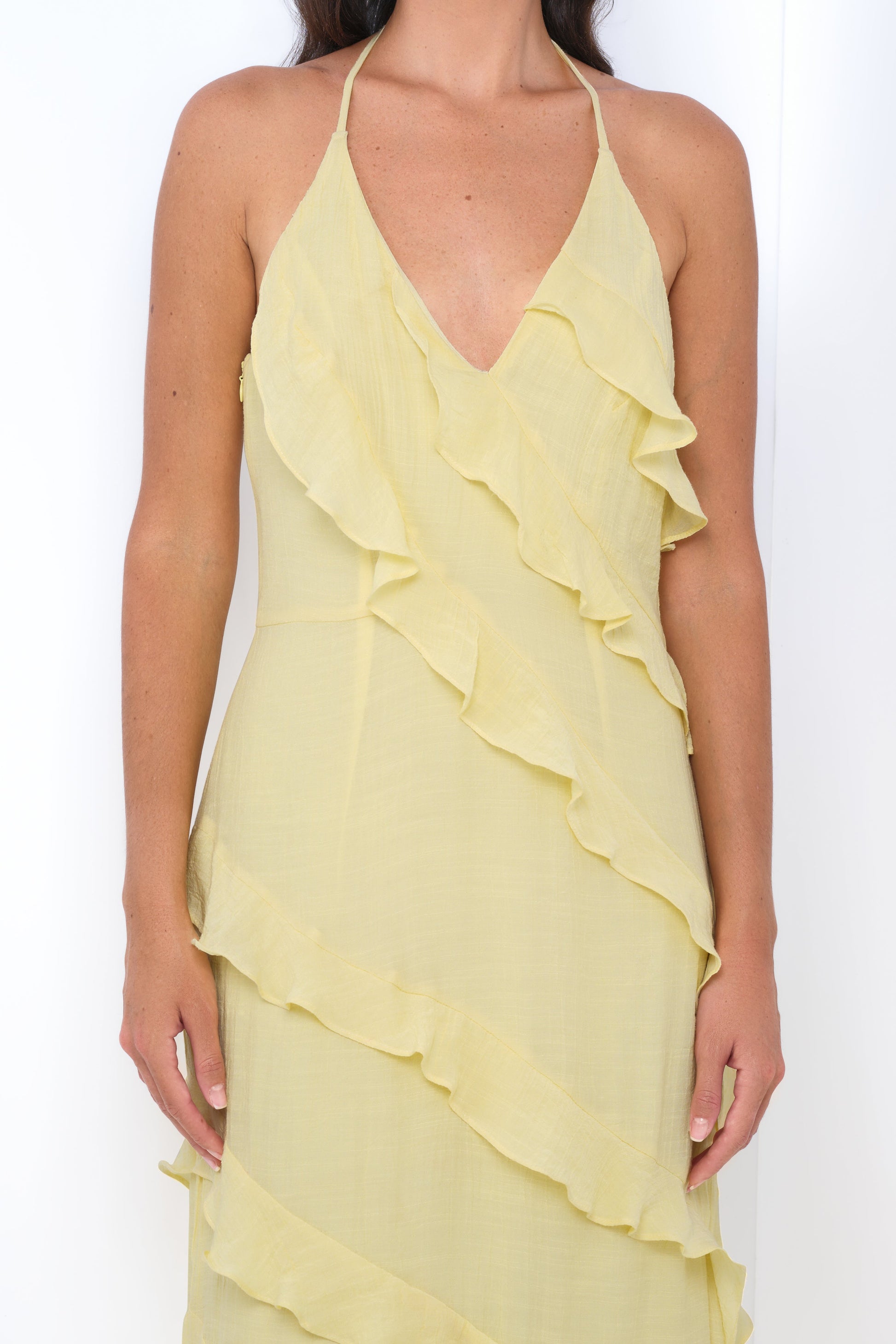 Remi Yellow Maxi Dress - Halter Neck, Open Back & Ruffle Detail