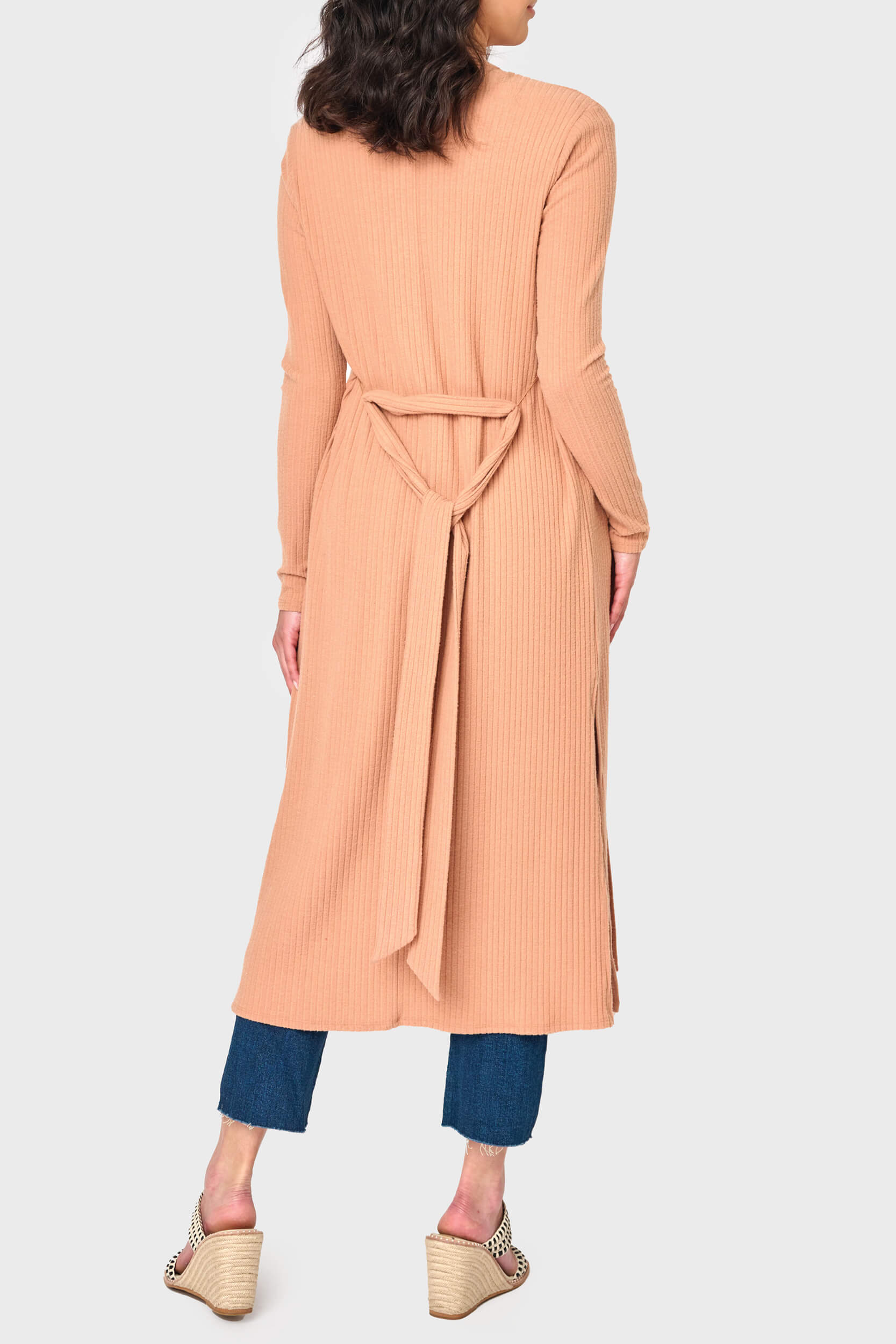 Ribbed Knit Duster Cardigan With Side Slit