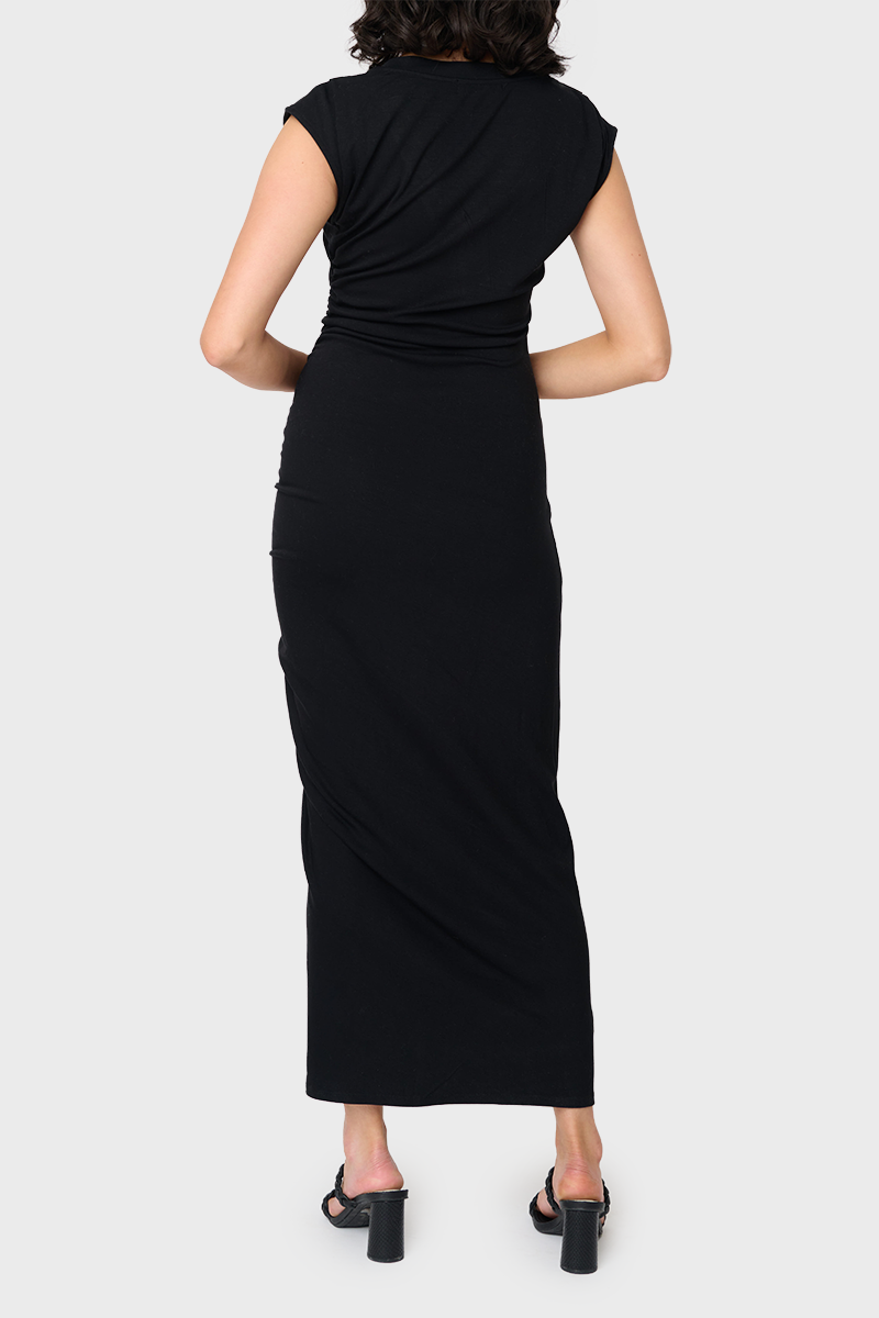 Soft Ponte V-neck Side Cinch Maxi Dress