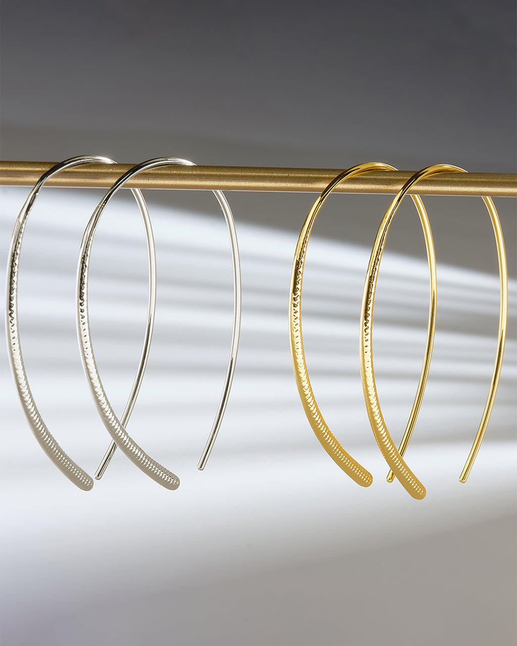 Our best-selling Delicate Threader reimagined! These threader hoops are sure to be unlike any other hoops in your earring collection. Their unique shape is delicate, but not so delicate that they won't get noticed when you wear them out and about!