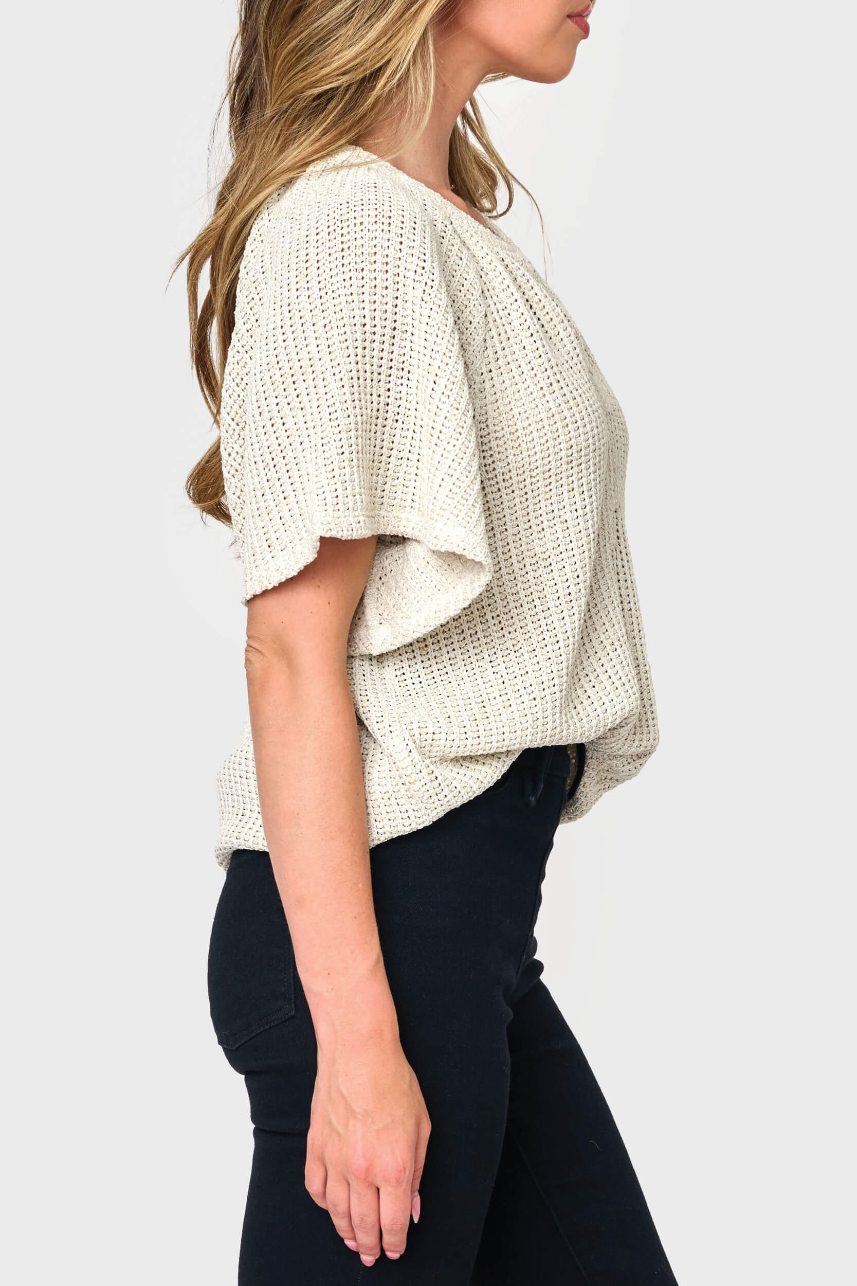 The Jordan Open Stitch Henley offers an eased fit and bell short sleeves for an elevated casual look. The henley neck adds a touch of charm, while the open weave knit provides supersoft comfort.