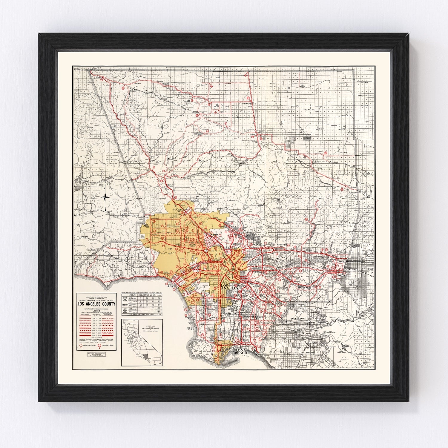 Step back in time with this stunning vintage map of Los Angeles County, California from 1935. Our team at Ted's Vintage Art has digitally restored this piece to bring you a high-quality snapshot of history that is perfect for any setting—be it your home, office, or study. The detailed depiction of Los Angeles County invites you to explore iconic cities like Los Angeles itself and Long Beach while celebrating the unique local history.