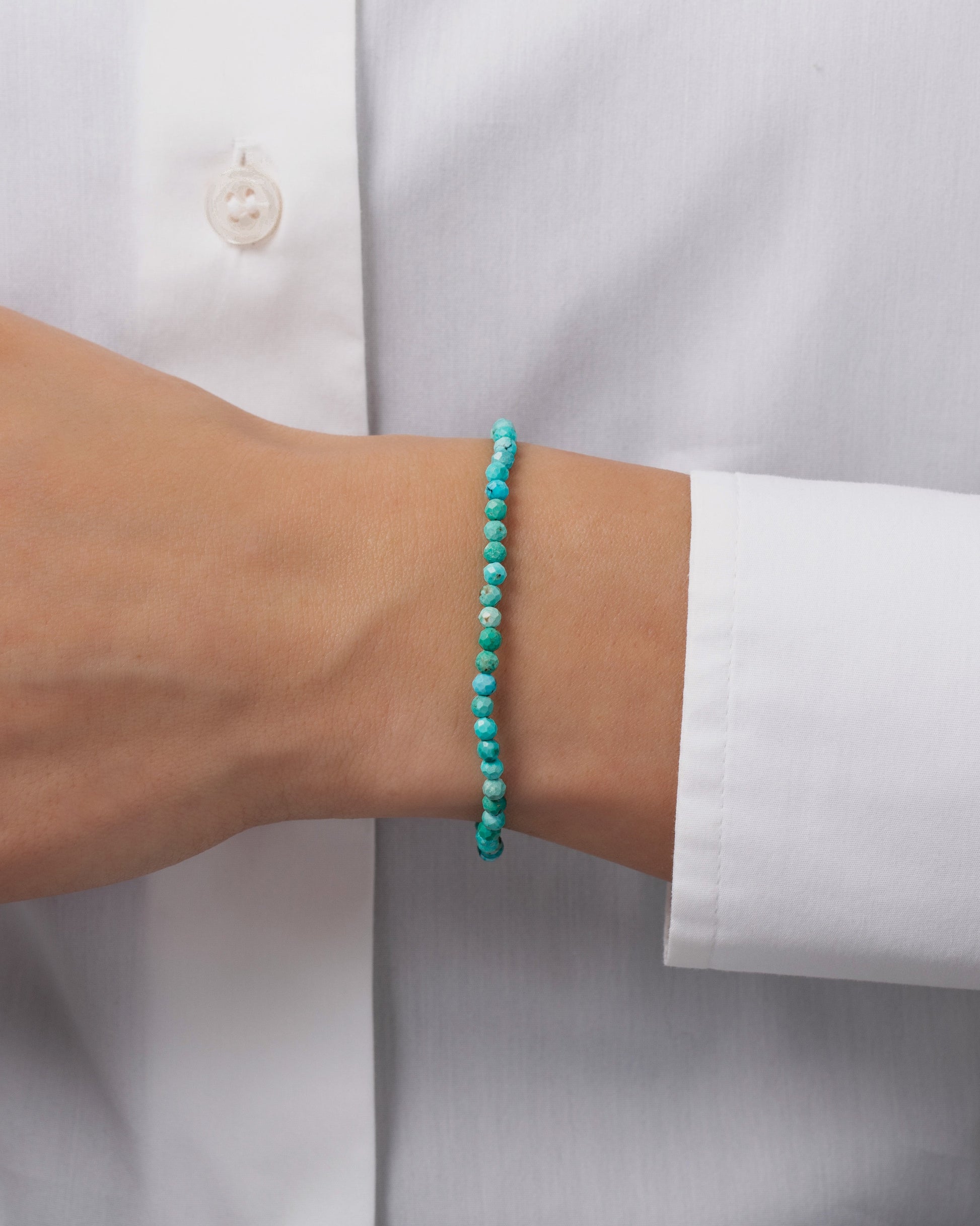 Turquoise Bead Bracelet with textured turquoise stones. Prized since the dawn of time, turquoise is one of the oldest known gem materials and is the dazzler of December birthstones. With its calming, centering energy, it'll make you feel balanced and chill when life has you overwhelmed and is great for use in meditation. Eye-catching on its own or adds a vibrant pop when stacked with other bracelets!